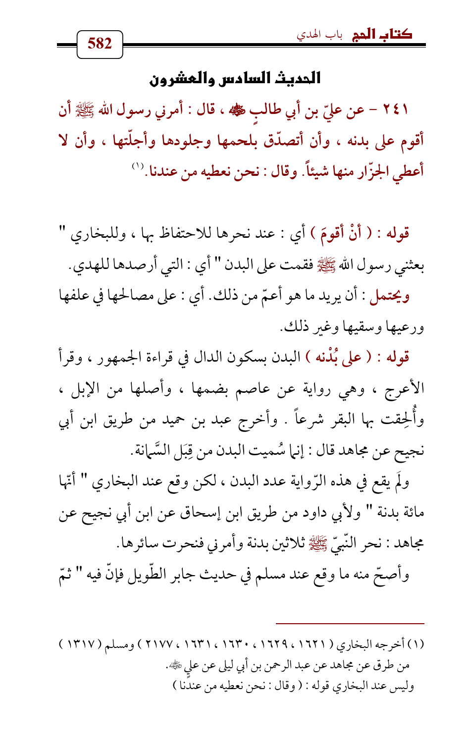 (¬1) أخرجه البخاري (1621 , 1629 , 1630 , 1631 , 2177) ومسلم (1317) من طرق عن مجاهد عن عبد الرحمن بن أبي ليلى عن عليٍ - رضي الله عنه -.