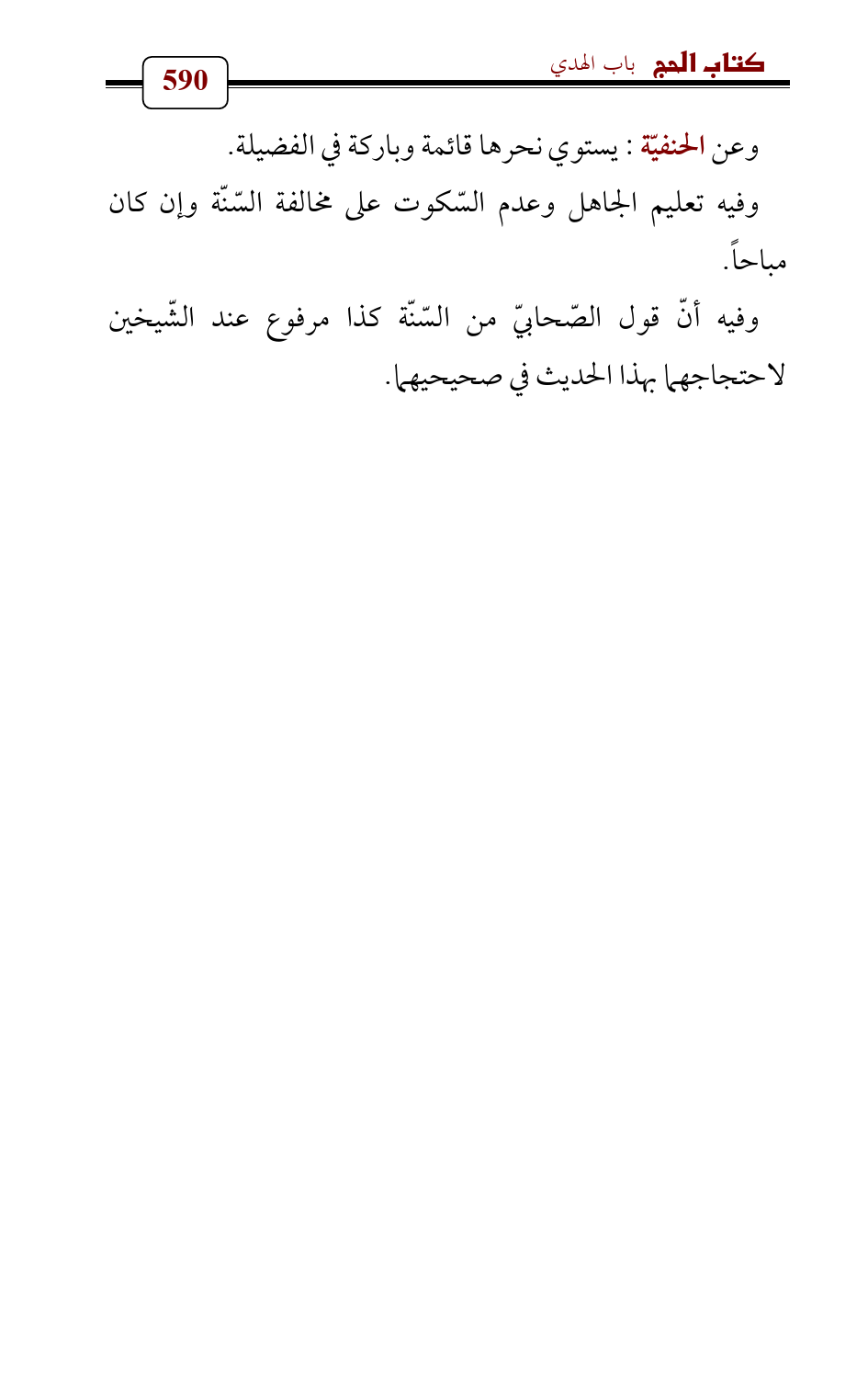 وفيه أنّ قول الصّحابيّ من السّنّة كذا مرفوع عند الشّيخين لاحتجاجهما بهذا الحديث في صحيحيهما.