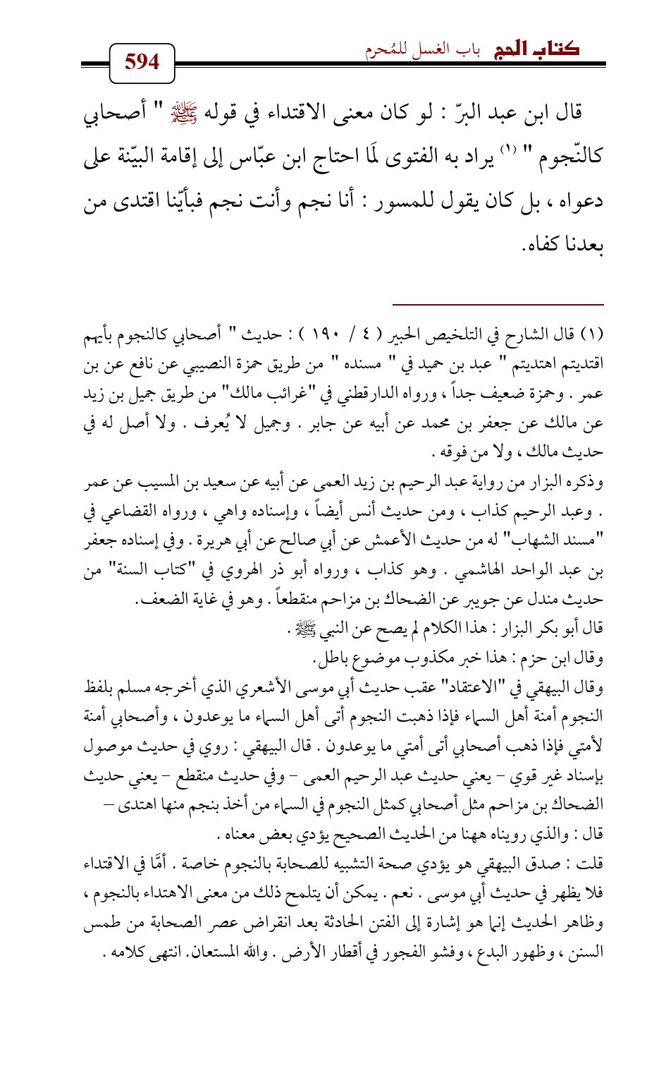 قلت: صدق البيهقي هو يؤدي صحة التشبيه للصحابة بالنجوم خاصة. أمَّا في الاقتداء فلا يظهر في حديث أبي موسى. نعم. يمكن أن يتلمح ذلك من معنى الاهتداء بالنجوم , وظاهر الحديث إنما هو إشارة إلى الفتن الحادثة بعد انقراض عصر الصحابة من طمس السنن , وظهور البدع , وفشو الفجور في أقطار الأرض. والله المستعان. انتهى كلامه.