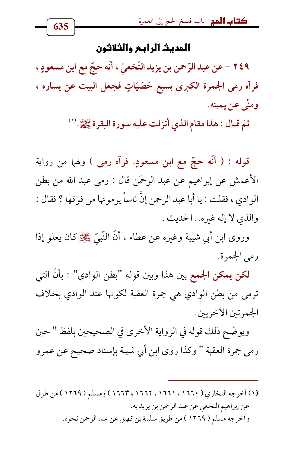 (¬1) أخرجه البخاري (1660 , 1661 , 1662 , 1663) ومسلم (1269) من طرق عن إبراهيم النخعي عن عبد الرحمن بن يزيد به.