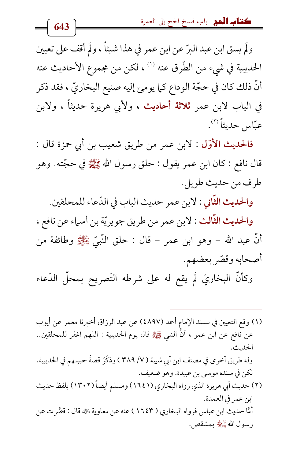 (¬2) حديث أبي هريرة الذي رواه البخاري (1641) ومسلم أيضاً (1302) بلفظ حديث ابن عمر في العمدة.