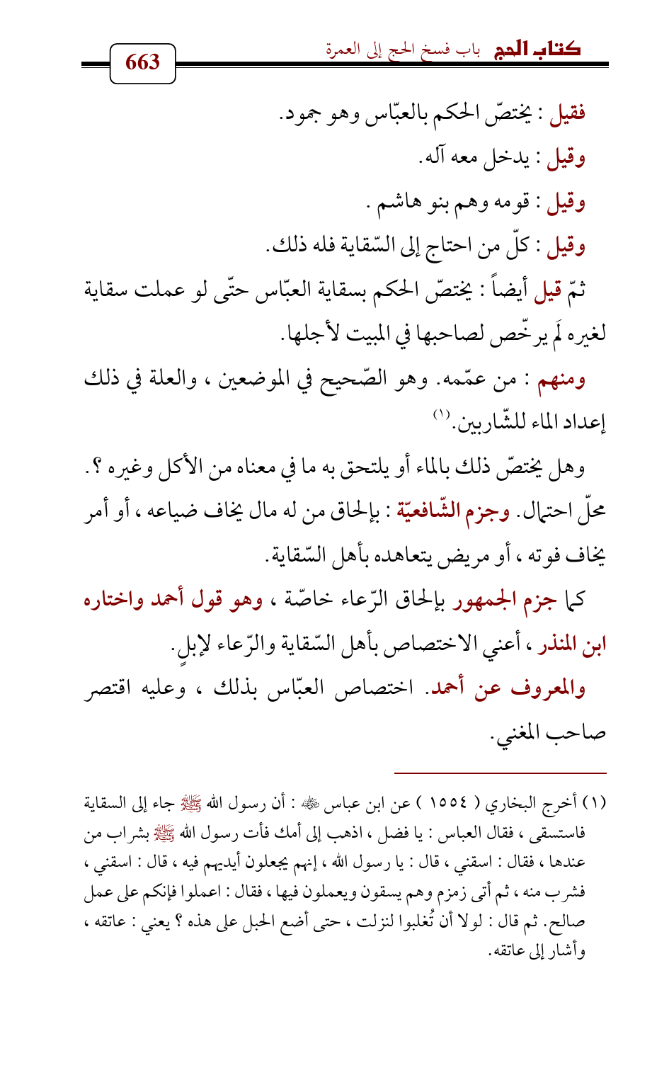 والمعروف عن أحمد. اختصاص العبّاس بذلك , وعليه اقتصر صاحب المغني.