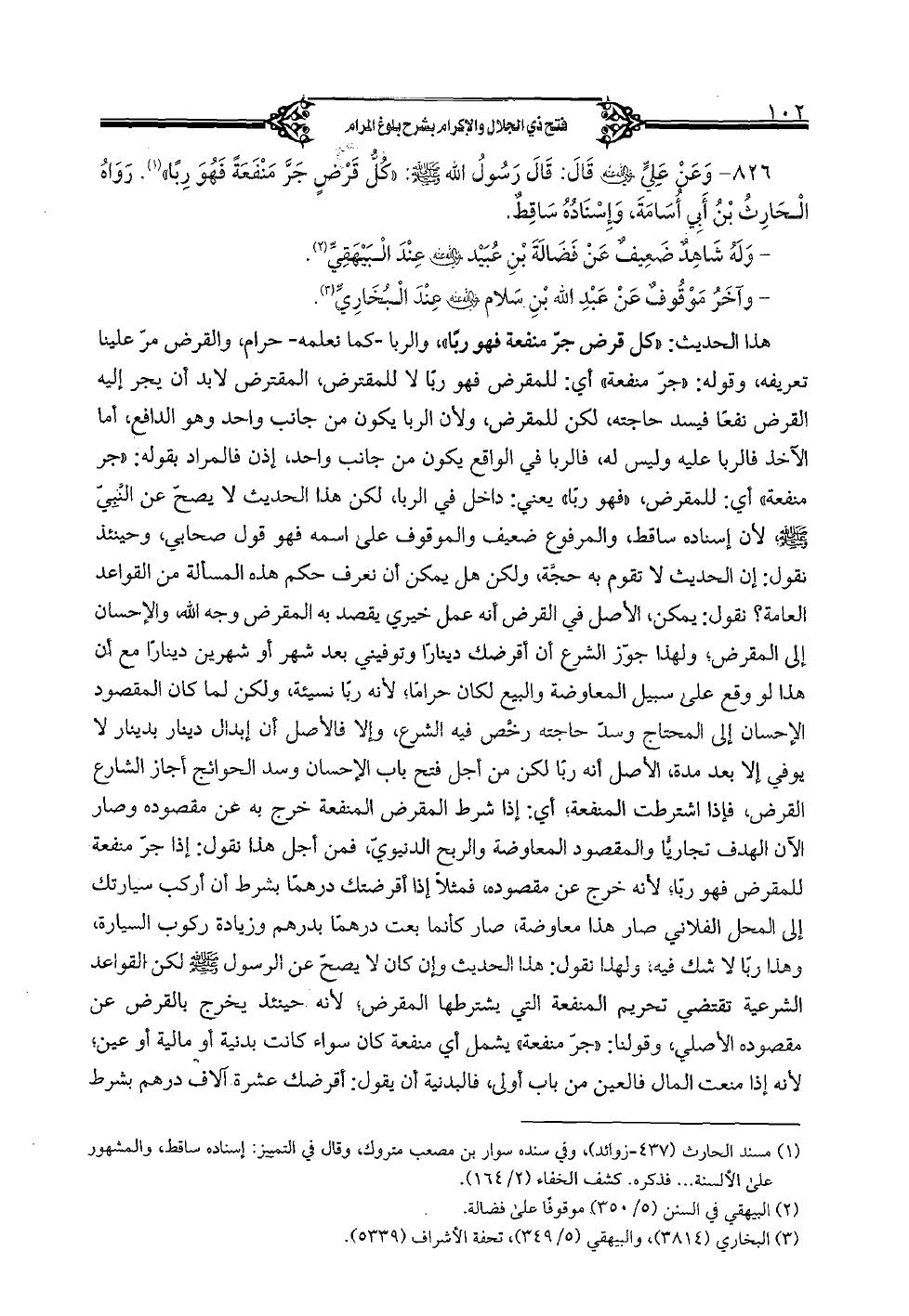 826 - وعن علي رضي الله عنه قال: قال رسول الله صلى الله عليه وسلم: «كل قرض فهو ربا». رواه الحارث بن أبي أسامة، وإسناده ساقط.