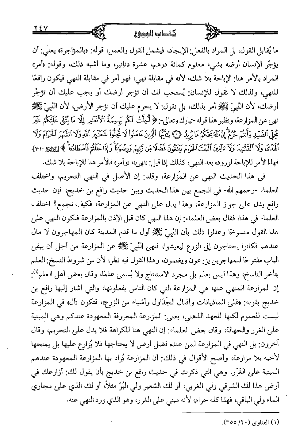 ما يقابل القول، بل المراد بالفعل: الإيجاد، فيشمل القول والعلم، قوله: "بالمؤاجرة" يعني: أن يؤجر الإنسان أرضه بشيء معلوم كمائة درهم، عشرة دنانير، وما أشبه ذلك، وقوله: "أمر" المراد بالأمر هنا: الإباحة بلا شك؛ لأنه في مقابلة نهي، فهو أمر في مقابلة النهي فيكون رافعًا للنهي، ولذلك لا نقول للإنسان: يستحب لك أن تؤجر أرضك أو يجب عليك أن تؤجر أرضك؛ لأن النبي صلى الله عليه وسلم أمر بذلك، بل نقول: لا يحرم عليك أن تؤجر الأرض؛ لأن النبي صلى الله عليه وسلم نهى عن المزارعة، ونظير هذا قوله - تبارك وتعالى -: {أحلت لكم بهيمة الأنعام إلا ما يتلى عليكم غير محلى الصيد وأنتم حرم إن الله يحكم ما يريد يأيها الذين ءامنوا لا تحلوا شعائر الله ولا الشهر الحرام ولا الهدي ولا القلئد ولا ءامين البيت الحرام يبتغون فضلاً من ربهم ورضوانًا وإذا حللتم فاصطادوا} [المائدة: 1 - 2]. فهذا الأمر للإباحة لوروده بعد النهي، كذلك إذا قيل: "نهى"، و"أمر" فالأمر هنا للإجابة بلا شك.