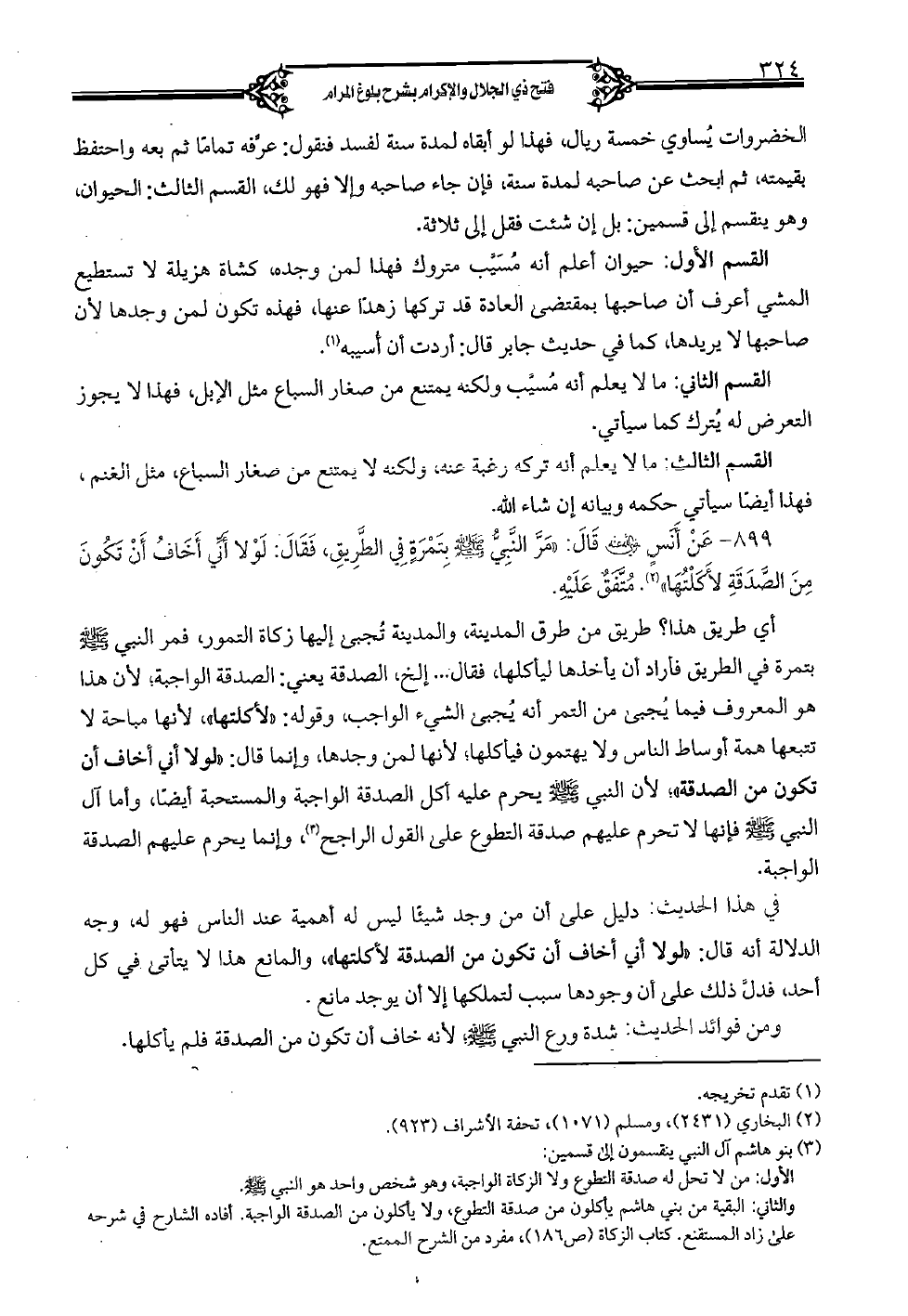 899 - عن أنس (رضي الله عنه) قال: «مَرَّ النبي (صلى الله عليه وسلم) بتمرة في الطريق، فقال: لولا أني أخاف أن تكون من الصدقة لأكلتها». متفق عليه.