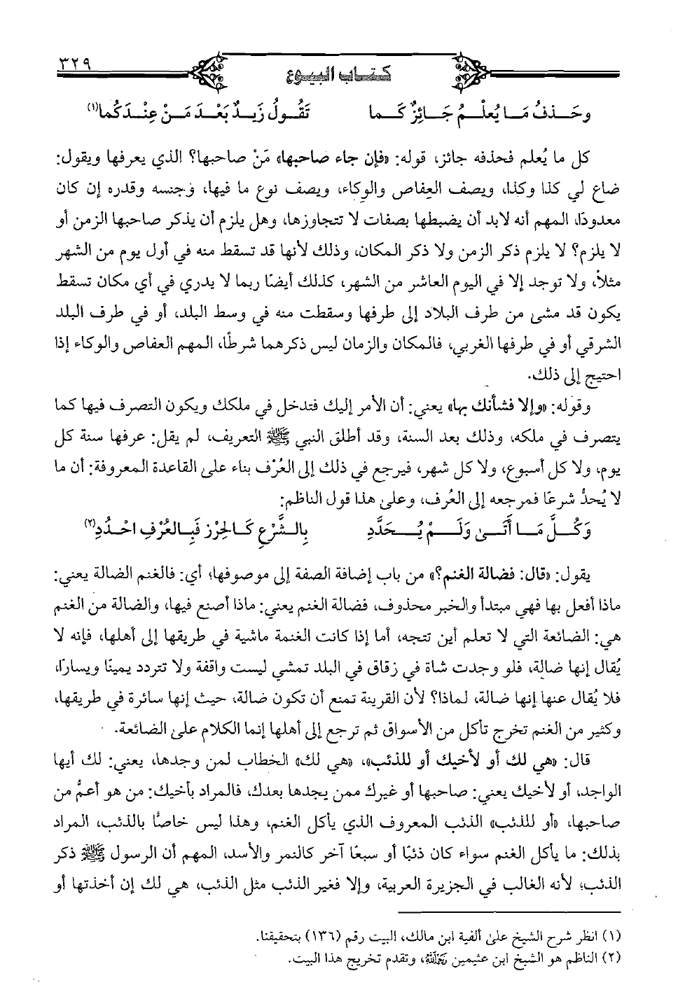 يقول: «قال: فضالة الغنم؟ » من باب إضافة الصفة إلى موصوفها، أي: فالغنم الضالة يعني: ماذا أفعل بها فهي مبتدأ والخبر محذوف، فضالة الغنم يعني: ماذا أصنع فيها، والضالة من الغنم هي: الضائعة التي لا تعلم أين تتجه، أما إذا كانت الغنمة ماشية في طريقها إلى أهلها، فإنه لا يقال إنها ضالة، فلو وجدت شاة في زقاق في البلد تمشي ليست واقفة ولا تتردد يمينا ويسارا، فلا يُقال عنها إنها ضالة، لماذا؟ لأن القرينة تمنع أن تكون ضالة، حيث إنها سائرة في طريقها، وكثير من الغنم تخرج تأكل من الأسواق ثم ترجع إلى أهلها إنما الكلام على الضائعة. قال: «هي لك أو لأخيك أو للذئب»، «هي لك» الخطاب لمن وجدها، يعني: لك أيها الواجد، أو لأخيك يعني: صاحبها أو غيرك ممن يجدها بعدك، فالمراد بأخيك: من هو أعمُ من صاحبها، «أو للذئب»، الذئب المعروف الذي يأكل الغنم، وهذا ليس خاصا بالذئب، المراد بذلك: ما يأكل الغنم سواء كان ذئبا أو سبعًا آخر كالنمر والأسد، المهم أن الرسول (صلى الله عليه وسلم) ذكر الذئب، لأنه الغالب في الجزيرة العربية، وإلا فغير الذئب مثل الذئب، هي لك إن أخذتها أو