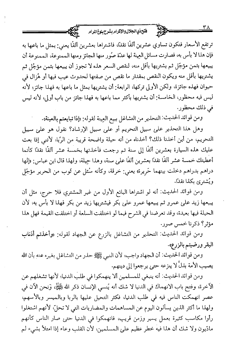 ومن فوائد الحديث: التحذير من التشاغل ببيع العينة لقوله: "إذا تبايعتم بالعينة".