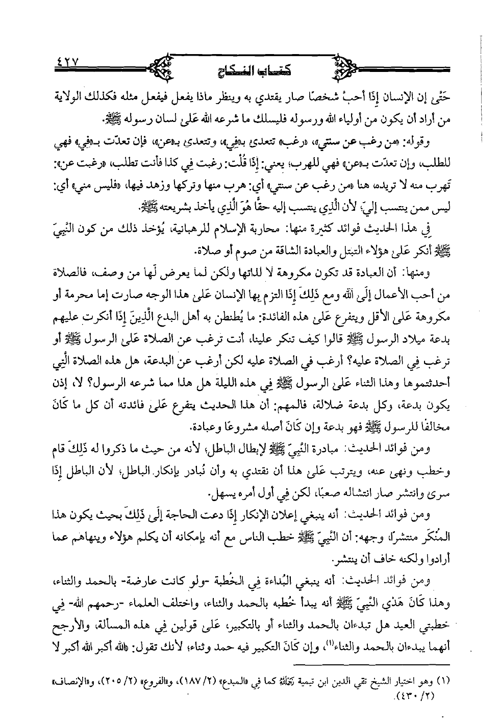 حَتَّى إن الإنسان إذا أحب شخصنا صار يقتدي به وينظر ماذا يفعل فيفعل مثله فكذلك الولاية من أراد أن يكون من أولياء الله ورسوله فليسلك ما شرعه الله على لسان رسوله (صلى الله عليه وسلم).