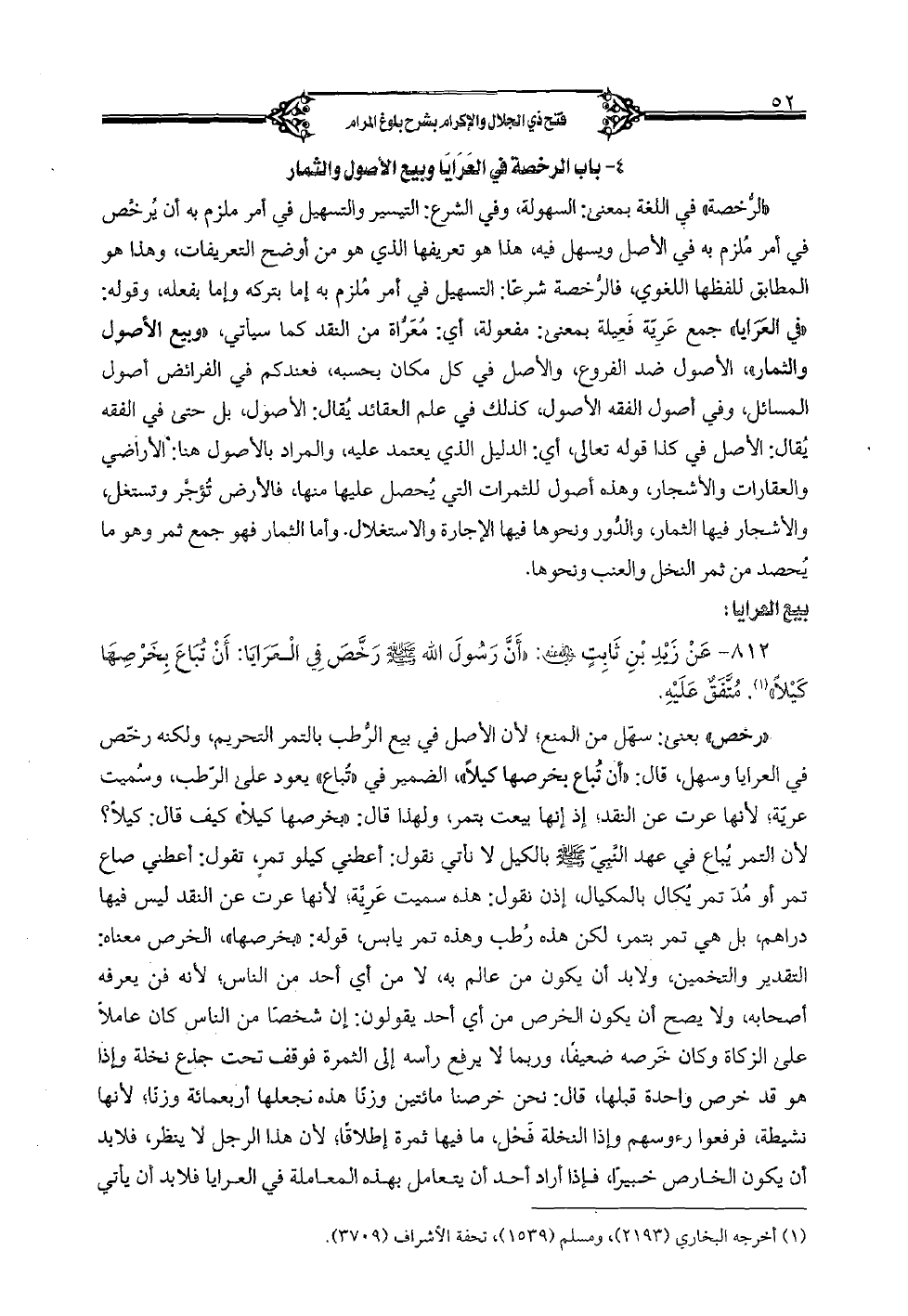812 - عن زيد بن ثابت رضي الله عنه: «أن رسول الله صلى الله رخص في العرايا: أن تباع بخرصها كيلا». متفق عليه.