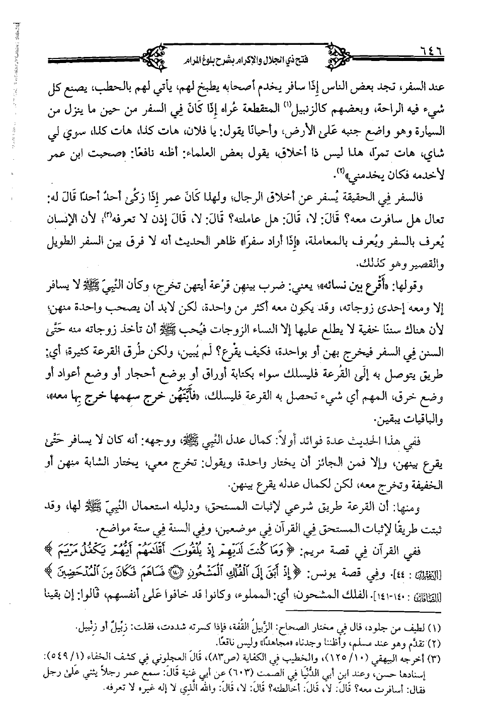 ففي القرآن في قصة مريم: {وما كنت لديهم إذ يلقون أقلامهم أيهم يكفل مريم} [آل عمران: 44]. وفي قصة يونس: {إذ أبق إلى الفلك المشحون (140) فساهم فكان من المدحضين} [الصافات: 140 - 141]. الفلك المشحون؛ أي: المملوء، وكانوا قد خافوا على أنفسهم، قالوا: إن بقينا