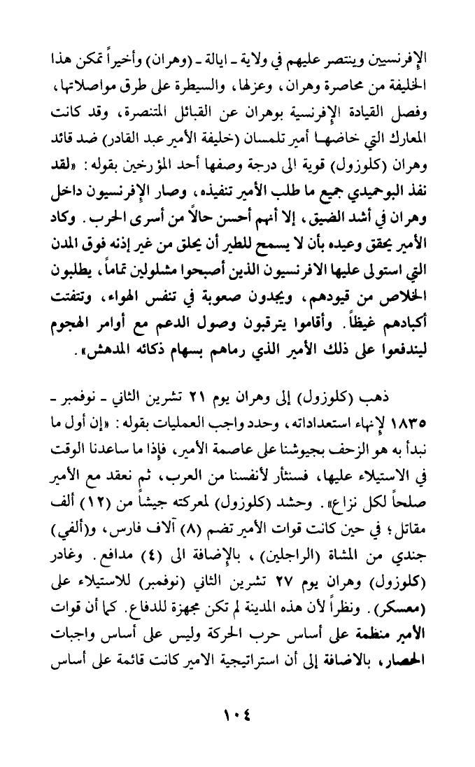 الإفرنسيين وينتصر عليهم في ولاية - إيالة - (وهران) وأخيرا. تمكن هذا الخليفة من محاصرة وهران، وعزلها، والسيطرة على طرق مواصلاتها، وفصل القيادة الإفرنسية بوهران عن القبائل المتنصرة، وقد كانت المعارك التي خاضها أمير تلمسان (خليفة الأمير عبد القادر) ضد قائد وهران (كلوزول) قوية إلى درجة وصفها أحد المؤرخين بقوله: (لقد نفذ البوحميدي جميع ما طلب الأمير تنفيذه، وصار الإفرنسيون داخل وهران في أشد الضيق، إلا أنهم أحسن حالا من أسرى الحرب. وكاد الأمير يحقق وعيده بأن لا يسمح للطير أن يحلق من غير إذنه فوق المدن التي استولى عليها الإفرنسيون الذين أصبحوا مشلولين تماما، يطلبون الخلاص من قيودهم، ويحدون صعوبة في تنفس الهواء، وتتفتت أكبادهم غيظا. وأقاموا يترقبون وصول الدعم مع أوامر الهجوم يندفعوا على ذلك الأمير الذي رماهم بسهام ذكائه المدهش).