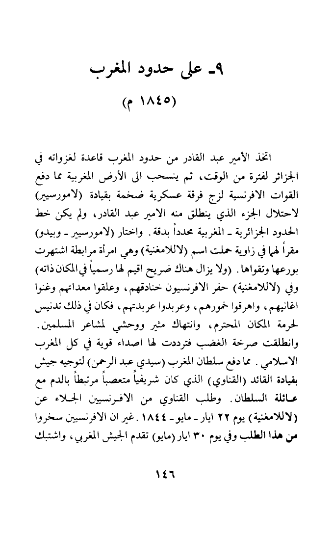 اتخذ الأمير عبد القادر من حدود المغرب قاعدة لغزواته في الجزائر لفترة من الوقت، ثم ينسحب إلى الأرض المغربية مما دفع القوات الإفرنسية لزج فرقة عسكرية ضخمة بقيادة (لامورسيير) لاحتلال الجزء الذي ينطلق منه الأمير عبد القادر، ولم يكن خط الحدود الجزائرية - المغربية محددا بدقة. واختار (لامورسيير - وبيدو) مقرا لهما في زاوية حملت اسم (لاللامغنية) وهي امرأة مرابطة اشتهرت بورعها وتقواها. (ولا يزال هناك ضريح أقيم لها رسميا في المكان ذاته) وفي (لاللامغنية) حفر الإفرنسيون خنادقهم، وعلقوا معداتهم وغنوا أغانيهم، وأهرقوا خمورهم، وعربدوا عربدتهم، فكان في ذلك تدنيس لحرمة المكان المحترم، وانتهاك مثير ووحشي لمشاعر المسلمين. وانطلقت صرخة الغضب فترددت لها أصداء قوية في كل المغرب الإسلامي. مما دفع سلطان المغرب (سيدي عبد الرحمن) لتوجيه جيش بقيادة القائد (القناوي) الذي كان شريفيا متعصبا مرتبطا بالدم مع عائلة السلطان. وطلب القناوي من الإفرنسيين الجلاء عن (لاللامغنية) يوم 22 أيار - مايو - 1844. غير أن الإفرنسيين سخروا من هذا الطلب وفي يوم 30 أيار (مايو) تقدم الجيش المغربي، واشتبك