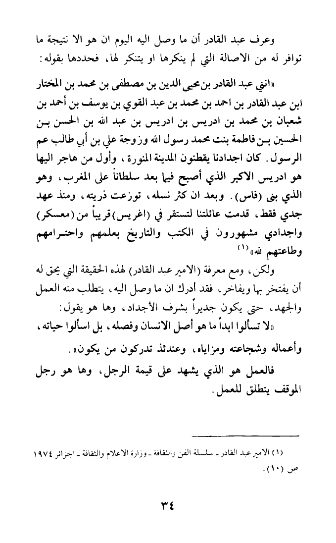 (¬1) الأمير عبد القادر - سلسلة الفن والثقافة - وزارة الأعلام والثقافة - الجزائر 1974 ص (10).