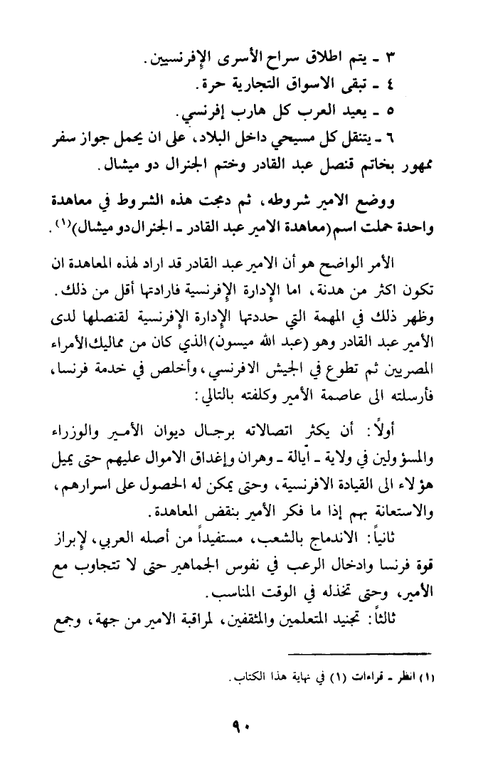 أولا: أن يكثر اتصالاته برجال ديوان الأمير والوزراء والمسؤولين في ولاية - إيالة - وهران وإغداق الأموال عليهم حتى يميل هؤلاء إلى القيادة الإفرنسية، وحتى يمكن له الحصول على أسرارهم، والاستعانة بهم إذا ما فكر الأمير بنقض المعاهدة.