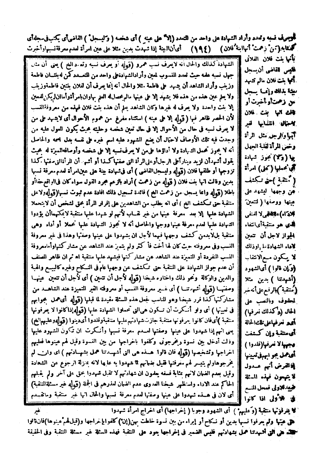 أَوْ يَعْرِفُ نَسَبَهُ وَتَعَدَّدَ وَأَرَادَ الشَّهَادَةَ عَلَى وَاحِدٍ مِنْ الْمُتَعَدِّدِ (إلَّا عَلَى عَيْنِهِ) أَيْ شَخْصِهِ (وَلْيُسَجِّلْ) الْقَاضِي أَيْ يَكْتُبُ فِي سِجِلِّهِ أَيْ كِتَابِهِ (مَنْ زَعَمَتْ أَنَّهَا ابْنَةُ فُلَانٍ) أَيْ أَنَّ الْبَيِّنَةَ إذَا شَهِدَتْ بِدَيْنٍ مَثَلًا عَلَى عَيْنِ امْرَأَةٍ لِعَدَمِ مَعْرِفَةِ نَسَبِهَا وَأَخْبَرَتْ بِأَنَّهَا بِنْتُ فُلَانٍ الْفُلَانِيِّ فَلَيْسَ لِلْقَاضِي أَنْ يُسَجِّلَ أَنَّهَا بِنْتُ فُلَانٍ مَا لَمْ تَشْهَدْ بَيِّنَةٌ بِذَلِكَ وَإِنَّمَا يُسَجِّلُ مَنْ زَعَمَتْ أَوْ أَخْبَرَتْ أَوْ قَالَتْ إنَّهَا بِنْتُ فُلَانٍ لِاحْتِمَالِ انْتِسَابِهَا لِغَيْرِ أَبِيهَا وَالرَّجُلُ مِثْلُ الْمَرْأَةِ وَخَصَّ الْمَرْأَةَ لِغَلَبَةِ الْجَهْلِ بِهَا