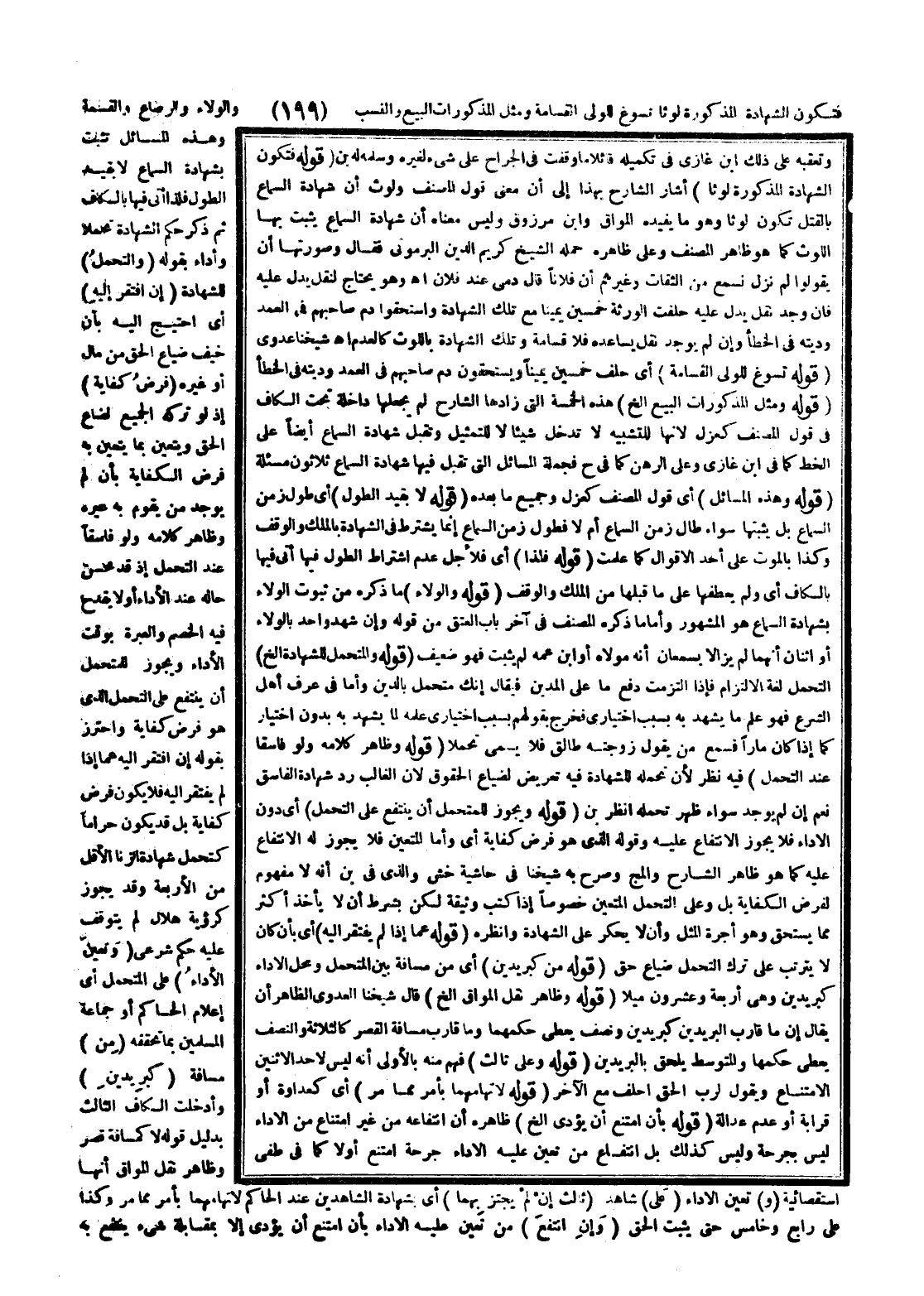 فَتَكُونُ الشَّهَادَةُ الْمَذْكُورَةُ لَوْثًا تُسَوِّغُ لِلْوَلِيِّ الْقَسَامَةَ وَمِثْلُ الْمَذْكُورَاتِ الْبَيْعُ وَالنَّسَبُ وَالْوَلَاءُ وَالرَّضَاعُ وَالْقِسْمَةُ وَهَذِهِ الْمَسَائِلُ تَثْبُتُ بِشَهَادَةِ السَّمَاعِ لَا بِقَيْدِ الطُّولِ فَلِذَا أَتَى فِيهَا بِالْكَافِ