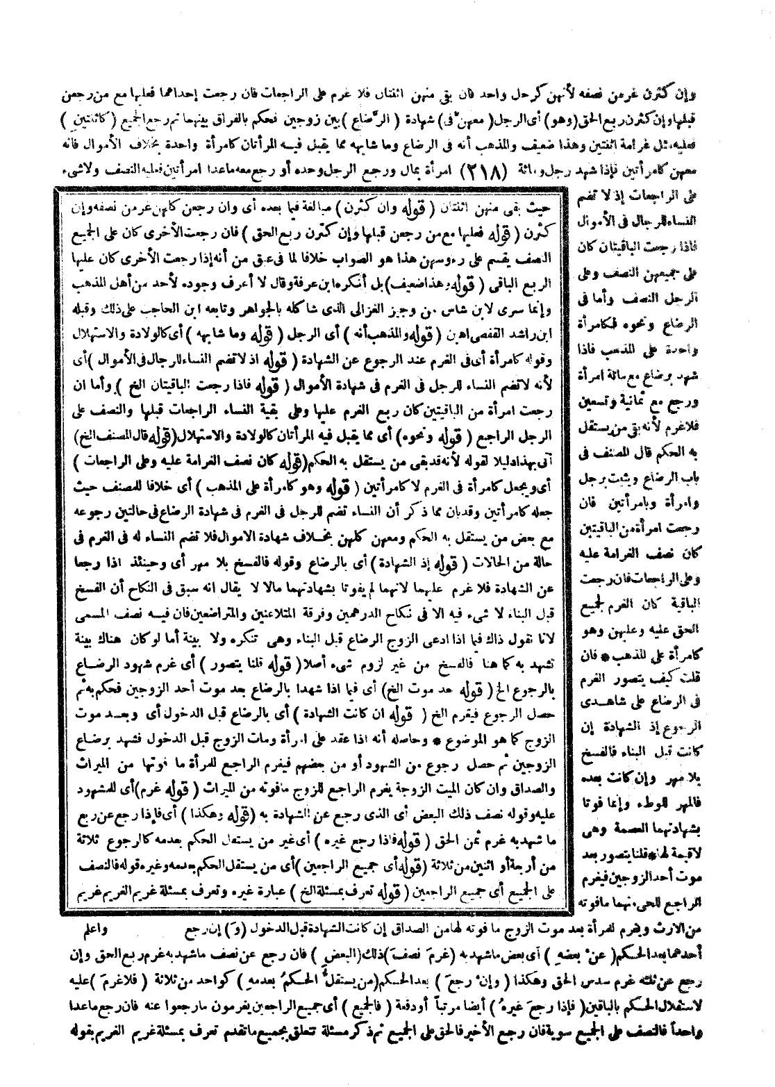 وَإِنْ كَثُرْنَ غَرِمْنَ نِصْفَهُ لِأَنَّهُنَّ كَرَجُلٍ وَاحِدٍ فَإِنْ بَقِيَ مِنْهُنَّ اثْنَتَانِ فَلَا غُرْمَ عَلَى الرَّاجِعَاتِ فَإِنْ رَجَعَتْ إحْدَاهُمَا فَعَلَيْهَا مَعَ مَنْ رَجَعْنَ قَبْلَهَا وَإِنْ كَثُرْنَ رُبْعُ الْحَقِّ (وَهُوَ) أَيْ الرَّجُلُ (مَعَهُنَّ فِي) شَهَادَةِ (الرَّضَاعِ) بَيْنَ زَوْجَيْنِ فَحُكِمَ بِالْفِرَاقِ بَيْنَهُمَا ثُمَّ رَجَعَ الْجَمِيعُ (كَاثْنَتَيْنِ) فَعَلَيْهِ مِثْلُ غَرَامَةِ اثْنَتَيْنِ وَهَذَا ضَعِيفٌ وَالْمَذْهَبُ أَنَّهُ فِي الرَّضَاعِ وَمَا شَابَهَهُ مِمَّا يُقْبَلُ فِيهِ الْمَرْأَتَانِ كَامْرَأَةٍ وَاحِدَةٍ بِخِلَافِ الْأَمْوَالِ فَإِنَّهُ مَعَهُنَّ كَامْرَأَتَيْنِ فَإِذَا شَهِدَ رَجُلٌ وَمِائَةُ امْرَأَةٍ بِمَالٍ وَرَجَعَ الرَّجُلُ وَحْدَهُ أَوْ رَجَعَ مَعَهُ مَا عَدَا امْرَأَتَيْنِ فَعَلَيْهِ النِّصْفُ وَلَا شَيْءَ عَلَى الرَّاجِعَاتِ إذْ لَا تُضَمُّ النِّسَاءُ لِلرِّجَالِ فِي الْأَمْوَالِ فَإِذَا رَجَعَتْ الْبَاقِيَتَانِ كَانَ عَلَى جَمِيعِهِنَّ النِّصْفُ وَعَلَى الرَّجُلِ النِّصْفُ وَأَمَّا فِي الرَّضَاعِ وَنَحْوِهِ فَكَامْرَأَةٍ وَاحِدَةٍ عَلَى الْمَذْهَبِ فَإِذَا شَهِدَ بِرَضَاعٍ مَعَ مِائَةِ امْرَأَةٍ وَرَجَعَ مَعَ ثَمَانِيَةٍ وَتِسْعِينَ فَلَا غُرْمَ لِأَنَّهُ بَقِيَ مَنْ يَسْتَقِلُّ بِهِ الْحُكْمُ قَالَ الْمُصَنِّفُ فِي بَابِ الرَّضَاعِ وَيَثْبُتُ بِرَجُلٍ وَامْرَأَةٍ وَبِامْرَأَتَيْنِ فَإِنْ رَجَعَتْ امْرَأَةٌ مِنْ الْبَاقِيَتَيْنِ كَانَ نِصْفُ الْغَرَامَةِ عَلَيْهِ وَعَلَى الرَّاجِعَاتِ فَإِنْ رَجَعَتْ الْبَاقِيَةُ كَانَ الْغُرْمُ لِجَمِيعِ الْحَقِّ عَلَيْهِ وَعَلَيْهِنَّ وَهُوَ كَامْرَأَةٍ عَلَى الْمَذْهَبِ فَإِنْ قُلْت كَيْفَ يُتَصَوَّرُ الْغُرْمُ فِي الرَّضَاعِ عَلَى شَاهِدَيْ الرُّجُوعِ إذْ الشَّهَادَةُ إنْ كَانَتْ قَبْلَ الْبِنَاءِ فَالْفَسْخُ بِلَا مَهْرٍ وَإِنْ كَانَتْ بَعْدَهُ فَالْمَهْرُ لِلْوَطْءِ وَإِنَّمَا فَوَّتَا بِشَهَادَتِهِمَا الْعِصْمَةَ وَهِيَ لَا قِيمَةَ لَهَا قُلْنَا يُتَصَوَّرُ بَعْدَ مَوْتِ أَحَدِ الزَّوْجَيْنِ فَيَغْرَمُ الرَّاجِعُ لِلْحَيِّ مِنْهُمَا مَا فَوَّتَهُ مِنْ الْإِرْثِ وَيَغْرَمُ لِلْمَرْأَةِ بَعْدَ مَوْتِ الزَّوْجِ مَا فَوَّتَهُ لَهَا مِنْ الصَّدَاقِ إنْ كَانَتْ الشَّهَادَةُ قَبْلَ الدُّخُولِ