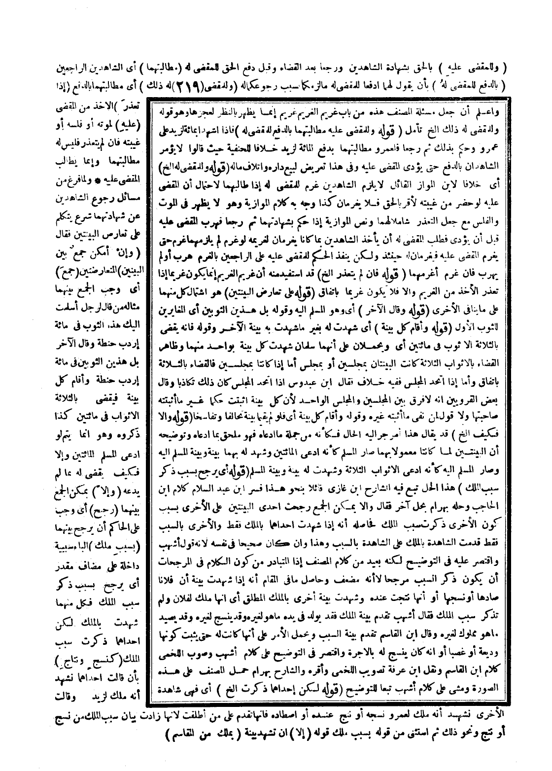 ـــــــــــــــــــــــــــــQوَاعْلَمْ أَنَّ جَعْلَ مَسْأَلَةِ الْمُصَنِّفِ هَذِهِ مِنْ بَابِ " غَرِيمُ الْغَرِيمِ غَرِيمٌ " إنَّمَا يَظْهَرُ بِالنَّظَرِ لِعَجْزِهَا وَهُوَ قَوْلُهُ وَلِلْمَقْضِيِّ لَهُ ذَلِكَ إلَخْ تَأَمَّلْ (قَوْلُهُ وَلِلْمَقْضِيِّ عَلَيْهِ مُطَالَبَتُهُمَا بِالدَّفْعِ لِلْمَقْضِيِّ لَهُ) فَإِذَا شَهِدَا بِمِائَةٍ لِزَيْدٍ عَلَى عَمْرٍو وَحُكِمَ بِذَلِكَ ثُمَّ رَجَعَا فَلِعَمْرٍو مُطَالَبَتُهُمَا بِدَفْعِ الْمِائَةِ لِزَيْدٍ خِلَافًا لِلْحَنَفِيَّةِ حَيْثُ قَالُوا لَا يُؤْمَرُ الشَّاهِدَانِ بِالدَّفْعِ حَتَّى يُؤَدِّيَ الْمَقْضِيُّ عَلَيْهِ وَفِي هَذَا تَعْرِيضٌ لِبَيْعِ دَارِهِ وَإِتْلَافِ مَالِهِ (قَوْلُهُ وَلِلْمَقْضِيِّ لَهُ إلَخْ) أَيْ خِلَافًا لِابْنِ الْمَوَّازِ الْقَائِلِ لَا يَلْزَمُ الشَّاهِدَيْنِ غُرْمٌ لِلْمَقْضِيِّ لَهُ إذَا طَالَبَهُمَا لِاحْتِمَالِ أَنَّ الْمَقْضِيَّ عَلَيْهِ لَوْ حَضَرَ مِنْ غَيْبَتِهِ لَأَقَرَّ بِالْحَقِّ فَلَا يَغْرَمَانِ كَذَا وُجِّهَ بِهِ كَلَامُ الْمَوَّازِيَّةِ وَهُوَ لَا يَظْهَرُ فِي الْمَوْتِ وَالْفَلَسِ مَعَ جَعْلِ التَّعَذُّرِ شَامِلًا لَهُمَا وَنَصُّ الْمَوَّازِيَّةِ إذَا حُكِمَ بِشَهَادَتِهِمَا ثُمَّ رَجَعَا فَهَرَبَ الْمَقْضِيُّ عَلَيْهِ قَبْلَ أَنْ يُؤَدِّيَ فَطَلَبَ الْمَقْضِيُّ لَهُ أَنْ يَأْخُذَ الشَّاهِدَيْنِ بِمَا كَانَ يَغْرَمَانِ لِغَرِيمِهِ لَوْ غَرِمَ لَمْ يَلْزَمْهُمَا غُرْمٌ حَتَّى يَغْرَمَ الْمَقْضِيُّ عَلَيْهِ فَيَغْرَمَانِ لَهُ حِينَئِذٍ وَلَكِنْ يَنْفُذُ الْحُكْمُ لِلْمَقْضِيِّ عَلَيْهِ عَلَى الرَّاجِعِينَ بِالْغُرْمِ هَرَبَ أَوْ لَمْ يَهْرُبْ فَإِنْ غَرِمَ أَغْرَمْهُمَا (قَوْلُهُ فَإِنْ لَمْ يَتَعَذَّرْ إلَخْ) قَدْ اُسْتُفِيدَ مِنْهُ أَنَّ غَرِيمَ الْغَرِيمِ إنَّمَا يَكُونُ غَرِيمًا إذَا تَعَذَّرَ الْأَخْذُ مِنْ الْغَرِيمِ وَإِلَّا فَلَا يَكُونُ غَرِيمًا بِاتِّفَاقٍ