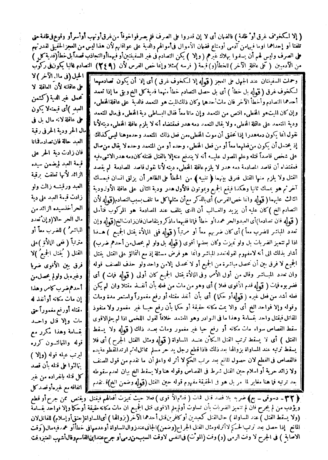 ـــــــــــــــــــــــــــــQوَحُمِلَتْ السَّفِينَتَانِ عِنْدَ الْجَهْلِ عَلَى الْعَجْزِ. (قَوْلُهُ: إلَّا لِكَخَوْفِ غَرَقٍ) أَيْ إلَّا أَنْ يَكُونَ تَصَادُمُهُمَا لِكَخَوْفِ غَرَقٍ (قَوْلُهُ: بَلْ خَطَأً) أَيْ بَلْ حَصَلَ التَّصَادُمُ خَطَأً مِنْهُمَا فَدِيَةُ كُلٍّ إلَخْ وَبَقِيَ مَا إذَا تَعَمَّدَ أَحَدُهُمَا التَّصَادُمَ وَأَخْطَأَ الْآخَرُ فَإِنْ مَاتَ أَحَدُهُمَا وَكَانَ ذَلِكَ الْمَيِّتُ هُوَ الْمُتَعَمِّدُ، فَالدِّيَةُ عَلَى عَاقِلَةِ الْمُخْطِئِ، وَإِنْ كَانَ الْمَيِّتُ هُوَ الْمُخْطِئُ اُقْتُصَّ مِنْ الْمُتَعَمِّدِ، وَإِنْ مَاتَا مَعًا فَقَالَ الْبِسَاطِيُّ دِيَةُ الْمُخْطِئِ فِي مَالِ الْمُتَعَمِّدِ وَدِيَةُ الْمُتَعَمِّدِ عَلَى عَاقِلَةِ الْمُخْطِئِ وَلَا يُقَالُ الْمُتَعَمِّدُ دَمُهُ هَدَرٌ فَمُقْتَضَاهُ أَنَّهُ لَا يَلْزَمُ عَاقِلَةَ الْمُخْطِئِ دِيَتُهُ؛ لِأَنَّا نَقُولُ إنَّمَا يَكُونُ دَمُهُ هَدَرًا إذَا تَحَقَّقَ أَنَّ مَوْتَ الْمُخْطِئِ مِنْ فِعْلِ ذَلِكَ الْمُتَعَمِّدِ وَحْدَهُ، وَهُنَا لَيْسَ كَذَلِكَ؛ إذْ يُحْتَمَلُ أَنْ يَكُونَ مِنْ فِعْلِهِمَا مَعًا، أَوْ مِنْ فِعْلِ الْمُخْطِئِ وَحْدَهُ، أَوْ مِنْ الْمُتَعَمِّدِ وَحْدَهُ لَا يُقَالُ مَنْ صَالَ عَلَى شَخْصٍ قَاصِدًا قَتْلَهُ وَعَلِمَ الْمَصُولُ عَلَيْهِ أَنَّهُ لَا يَنْدَفِعُ عَنْهُ إلَّا بِالْقَتْلِ فَقَتَلَهُ كَانَ دَمُهُ هَدَرًا لَا شَيْءَ فِيهِ فَمُقْتَضَاهُ أَنَّ قَاصِدَ الْمُصَادَمَةِ دَمُهُ هَدَرٌ لَا يَلْزَمُ عَاقِلَةَ الْمُخْطِئِ دِيَتُهُ؛ لِأَنَّا نَقُولُ قَاصِدُ الْمُصَادَمَةِ لَمْ يَقْصِدْ الْقَتْلَ وَلَا يَلْزَمُ مِنْهَا الْقَتْلُ فَفَرْقٌ بَيْنَهُمَا.