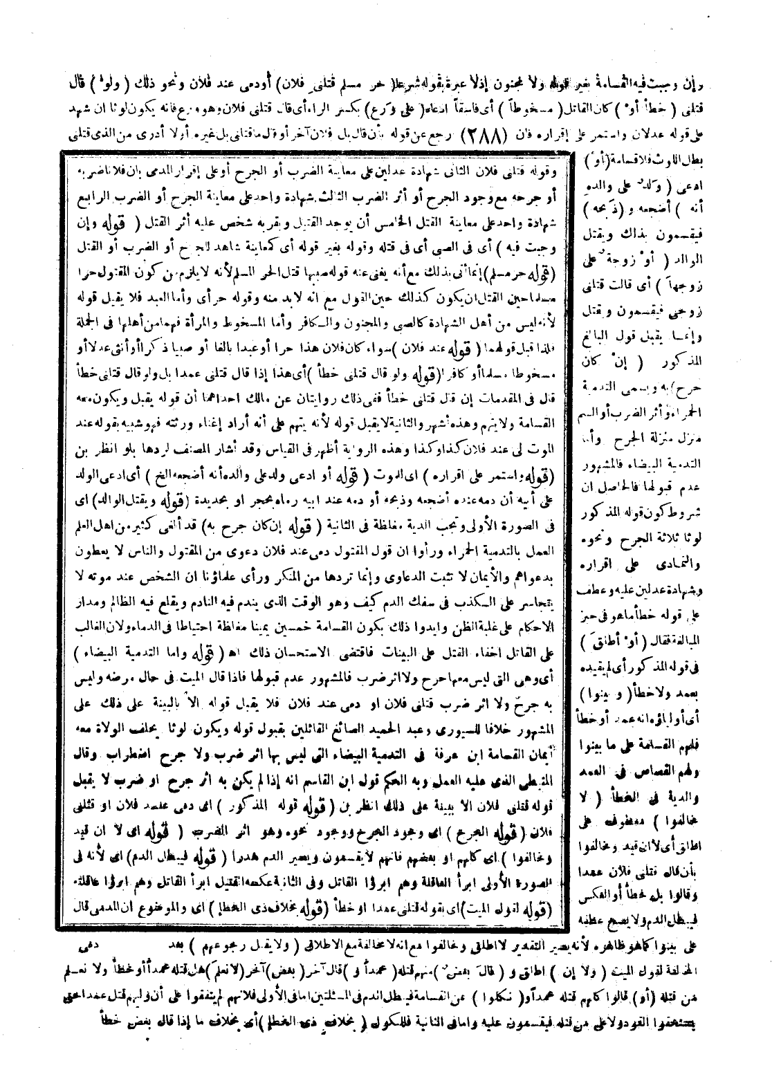 وَإِنْ وَجَبَتْ فِيهِ الْقَسَامَةُ بِغَيْرِ قَوْلِهِ وَلَا مَجْنُونٍ؛ إذْ لَا عِبْرَةَ بِقَوْلِهِ شَرْعًا (حُرٌّ مُسْلِمٌ قَتَلَنِي فُلَانٌ) ، أَوْ دَمِي عِنْدَ فُلَانٍ وَنَحْوُ ذَلِكَ (وَلَوْ) قَالَ قَتَلَنِي (خَطَأً، أَوْ) كَانَ الْقَاتِلُ (مَسْخُوطًا) أَيْ فَاسِقًا ادَّعَاهُ (عَلَى وَرِعٍ) بِكَسْرِ الرَّاءِ أَيْ قَالَ قَتَلَنِي فُلَانٌ، وَهُوَ وَرِعٌ فَإِنَّهُ يَكُونُ لَوْثًا إنْ شَهِدَ عَلَى قَوْلِهِ عَدْلَانِ وَاسْتَمَرَّ عَلَى إقْرَارِهِ فَإِنْ رَجَعَ عَنْ قَوْلِهِ بِأَنْ قَالَ بَلْ فُلَانٌ آخَرُ، أَوْ قَالَ مَا قَتَلَنِي بَلْ غَيْرُهُ، أَوْ لَا أَدْرِي مَنْ الَّذِي قَتَلَنِي بَطَلَ اللَّوْثُ فَلَا قَسَامَةَ (أَوْ) ادَّعَى (وَلَدٌ عَلَى، وَالِدِهِ أَنَّهُ) أَضْجَعَهُ و (ذَبَحَهُ) فَيُقْسِمُونَ بِذَلِكَ وَيُقْتَلُ الْوَالِدُ (أَوْ زَوْجَةٌ عَلَى زَوْجِهَا) أَيْ قَالَتْ قَتَلَنِي زَوْجِي فَيُقْسِمُونَ وَيُقْتَلُ، وَإِنَّمَا يُقْبَلُ قَوْلُ الْبَالِغِ الْمَذْكُورِ (إنْ كَانَ جُرِحَ) بِهِ وَيُسَمَّى التَّدْمِيَةَ الْحَمْرَاءَ وَأَثَرُ الضَّرْبِ، أَوْ السُّمِّ مُنَزَّلٌ مَنْزِلَةَ الْجُرْحِ وَأَمَّا التَّدْمِيَةُ الْبَيْضَاءُ، فَالْمَشْهُورُ عَدَمُ قَبُولِهَا، فَالْحَاصِلُ أَنَّ شُرُوطَ كَوْنِ قَوْلِهِ الْمَذْكُورِ لَوْثًا ثَلَاثَةً الْجُرْحُ وَنَحْوُهُ، وَالتَّمَادِي عَلَى إقْرَارِهِ وَشَهَادَةُ عَدْلَيْنِ عَلَيْهِ وَعَطَفَ عَلَى قَوْلِهِ مَا هُوَ فِي حَيِّزِ الْمُبَالَغَةِ فَقَالَ (أَوْ أَطْلَقَ) فِي قَوْلِهِ الْمَذْكُورِ أَيْ لَمْ يُقَيِّدْهُ بِعَمْدٍ وَلَا خَطَإٍ (وَبَيَّنُوا) أَيْ، أَوْلِيَاؤُهُ أَنَّهُ عَمْدٌ، أَوْ خَطَأٌ فَلَهُمْ الْقَسَامَةُ عَلَى مَا بَيَّنُوا وَلَهُمْ الْقِصَاصُ فِي الْعَمْدِ، وَالدِّيَةُ فِي الْخَطَإِ (لَا خَالَفُوا) مَعْطُوفٌ عَلَى أَطْلَقَ أَيْ لَا إنْ قُيِّدَ وَخَالَفُوا بِأَنْ قَالَ قَتَلَنِي فُلَانٌ عَمْدًا وَقَالُوا بَلْ خَطَأً، أَوْ الْعَكْسُ فَيَبْطُلُ الدَّمُ وَلَا يَصِحُّ عَطْفُهُ عَلَى بَيَّنُوا كَمَا هُوَ ظَاهِرُهُ؛ لِأَنَّهُ يَصِيرُ التَّقْدِيرُ لَا أَطْلَقَ وَخَالَفُوا مَعَ أَنَّهُ لَا مُخَالَفَةَ مَعَ الْإِطْلَاقِ (وَلَا يُقْبَلُ رُجُوعُهُمْ) بَعْدَ الْمُخَالَفَةِ لِقَوْلِ الْمَيِّتِ (وَلَا إنْ) أَطْلَقَ و (قَالَ بَعْضٌ) مِنْهُمْ قَتَلَهُ (عَمْدًا و) قَالَ آخَرُ (بَعْضٌ) آخَرُ (لَا نَعْلَمُ) هَلْ قَتَلَهُ عَمْدًا، أَوْ خَطَأً وَلَا نَعْلَمُ مَنْ قَتَلَهُ (أَوْ) قَالُوا كُلُّهُمْ قَتَلَهُ عَمْدًا و (نَكَلُوا) عَنْ الْقَسَامَةِ فَيَبْطُلُ الدَّمُ فِي الْمَسْأَلَتَيْنِ أَمَّا فِي الْأُولَى فَلِأَنَّهُمْ لَا يَتَّفِقُوا عَلَى أَنَّ وَلِيَّهُمْ قَتَلَ عَمْدًا حَتَّى يَسْتَحِقُّوا الْقَوَدَ وَلَا عَلَى مَنْ قَتَلَهُ فَيُقْسِمُونَ عَلَيْهِ وَأَمَّا فِي الثَّانِيَةِ فَلِلنُّكُولِ (بِخِلَافِ ذِي الْخَطَإِ) أَيْ بِخِلَافِ مَا إذَا قَالَ بَعْضٌ خَطَأً
