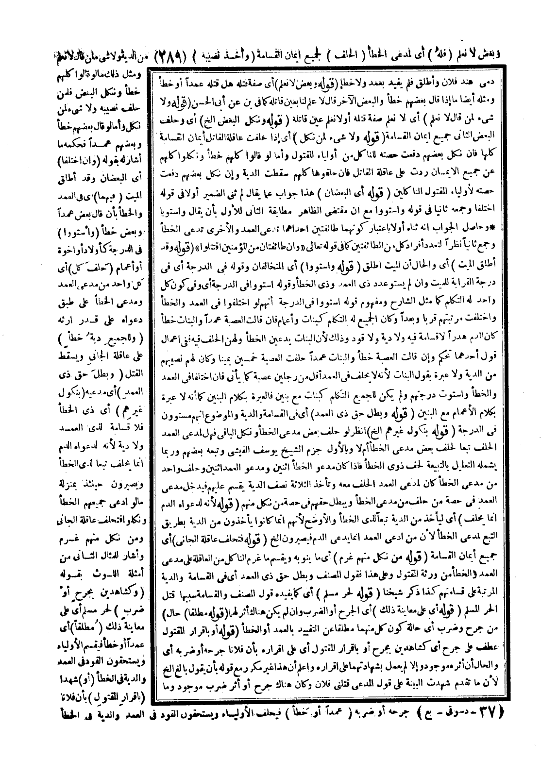 ـــــــــــــــــــــــــــــQدَمِي عِنْدَ فُلَانٍ وَأَطْلَقَ فَلَمْ يُقَيِّدْ بِعَمْدٍ وَلَا خَطَإٍ (قَوْلُهُ: وَبَعْضٌ لَا نَعْلَمُ) أَيْ صِفَةَ قَتْلِهِ عَمْدًا، أَوْ خَطَأً وَمِثْلُهُ أَيْضًا مَا إذَا قَالَ بَعْضُهُمْ خَطَأً، وَالْبَعْضُ الْآخَرُ قَالَ لَا عِلْمَ لَنَا بِعَيْنِ قَاتِلِهِ كَمَا فِي بْن عَنْ أَبِي الْحَسَنِ (قَوْلُهُ: وَلَا شَيْءَ لِمَنْ قَالَ لَا نَعْلَمُ) أَيْ لَا نَعْلَمُ صِفَةَ قَتْلِهِ، أَوْ لَا نَعْلَمُ عَيْنَ قَاتِلِهِ.