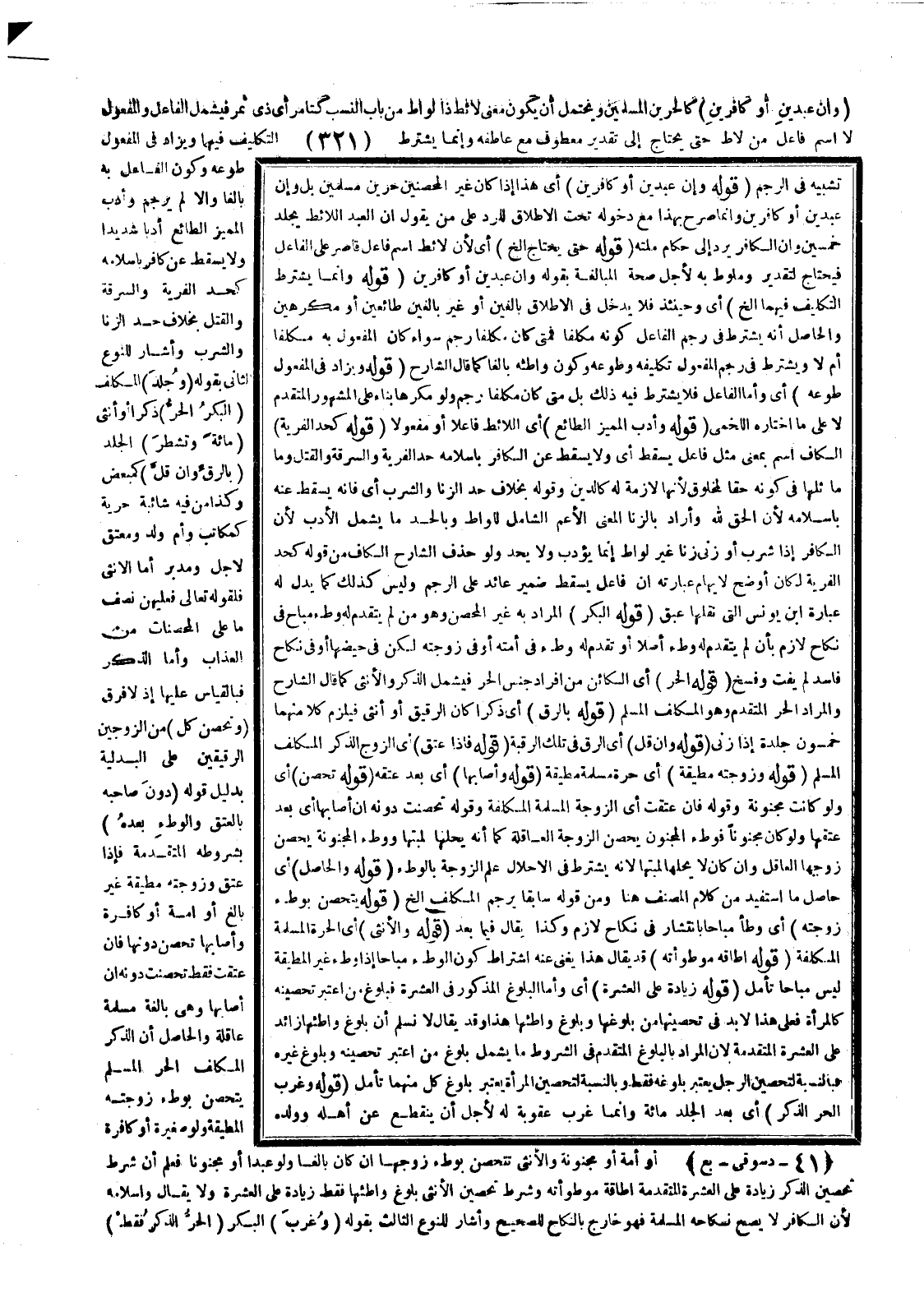 ـــــــــــــــــــــــــــــQتَشْبِيهٌ فِي الرَّجْمِ (قَوْلُهُ: وَإِنْ عَبْدَيْنِ أَوْ كَافِرَيْنِ) أَيْ هَذَا إذَا كَانَ غَيْرُ الْمُحْصَنَيْنِ حُرَّيْنِ مُسْلِمَيْنِ بَلْ وَإِنْ عَبْدَيْنِ أَوْ كَافِرَيْنِ وَإِنَّمَا صَرَّحَ بِهَذَا مَعَ دُخُولِهِ تَحْتَ الْإِطْلَاقِ لِلرَّدِّ عَلَى مَنْ يَقُولُ إنَّ الْعَبْدَ اللَّائِطَ يُجْلَدُ خَمْسِينَ وَإِنَّ الْكَافِرَ يُرَدُّ إلَى حُكَّامِ مِلَّتِهِ (قَوْلُهُ: حَتَّى يَحْتَاجَ إلَخْ) أَيْ لِأَنَّ لَائِطَ اسْمُ فَاعِلٍ قَاصِرٌ عَلَى الْفَاعِلِ فَيَحْتَاجُ لِتَقْدِيرٍ وَمَلُوطٍ بِهِ لِأَجْلِ صِحَّةِ الْمُبَالَغَةِ بِقَوْلِهِ، وَإِنْ عَبْدَيْنِ أَوْ كَافِرَيْنِ (قَوْلُهُ: وَإِنَّمَا يُشْتَرَطُ التَّكْلِيفُ فِيهِمَا إلَخْ) أَيْ وَحِينَئِذٍ فَلَا يَدْخُلُ فِي الْإِطْلَاقِ بَالِغَيْنِ أَوْ غَيْرَ بَالِغَيْنِ طَائِعَيْنِ أَوْ مُكْرَهَيْنِ وَالْحَاصِلُ أَنَّهُ يُشْتَرَطُ فِي رَجْمِ الْفَاعِلِ كَوْنُهُ مُكَلَّفًا فَمَتَى كَانَ مُكَلَّفًا رُجِمَ سَوَاءٌ كَانَ الْمَفْعُولُ بِهِ مُكَلَّفًا أَمْ لَا وَيُشْتَرَطُ فِي رَجْمِ الْمَفْعُولِ تَكْلِيفُهُ وَطَوْعُهُ وَكَوْنُ وَاطِئِهِ بَالِغًا كَمَا قَالَ الشَّارِحُ.