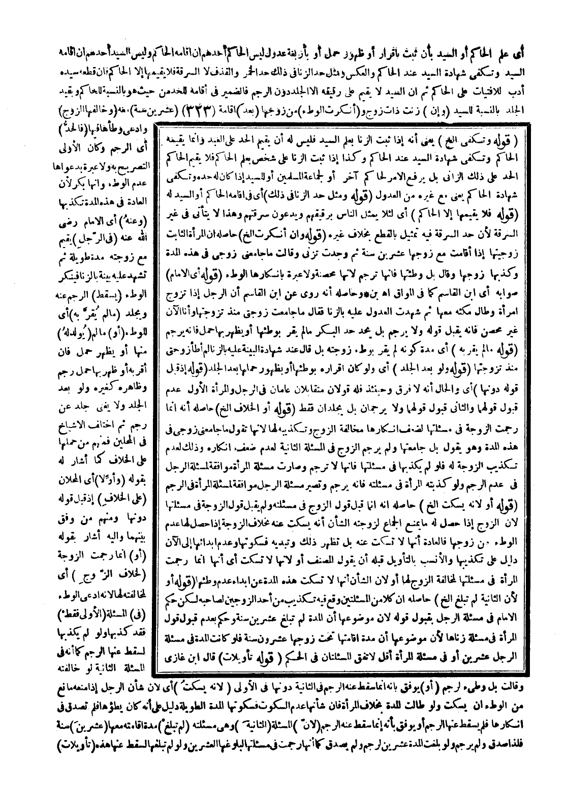(قَوْلُهُ: أَوْ الْخِلَافِ إلَخْ) حَاصِلُهُ أَنَّهُ إنَّمَا رُجِمَتْ الزَّوْجَةُ فِي مَسْأَلَتِهَا لِضَعْفِ إنْكَارِهَا مُخَالَفَةَ الزَّوْجِ وَتَكْذِيبَهُ لَهَا لِأَنَّهَا تَقُولُ مَا جَامَعَنِي زَوْجِي فِي هَذِهِ الْمُدَّةِ وَهُوَ يَقُولُ بَلْ جَامَعْتهَا وَلَمْ يُرْجَمْ الزَّوْجُ فِي الْمَسْأَلَةِ الثَّانِيَةِ لِعَدَمِ ضَعْفِ إنْكَارِهِ وَذَلِكَ لِعَدَمِ تَكْذِيبِ الزَّوْجَةِ لَهُ فَلَوْ لَمْ يُكَذِّبْهَا فِي مَسْأَلَتِهَا فَإِنَّهَا لَا تُرْجَمُ وَصَارَتْ مَسْأَلَةُ الْمَرْأَةِ مُوَافِقَةً لِمَسْأَلَةِ الرَّجُلِ فِي عَدَمِ الرَّجْمِ وَلَوْ كَذَّبَتْهُ الْمَرْأَةُ فِي مَسْأَلَتِهِ فَإِنَّهُ يُرْجَمُ وَتَصِيرُ مَسْأَلَةُ الرَّجُلِ مُوَافِقَةً لِمَسْأَلَةِ الْمَرْأَةِ فِي الرَّجْمِ.