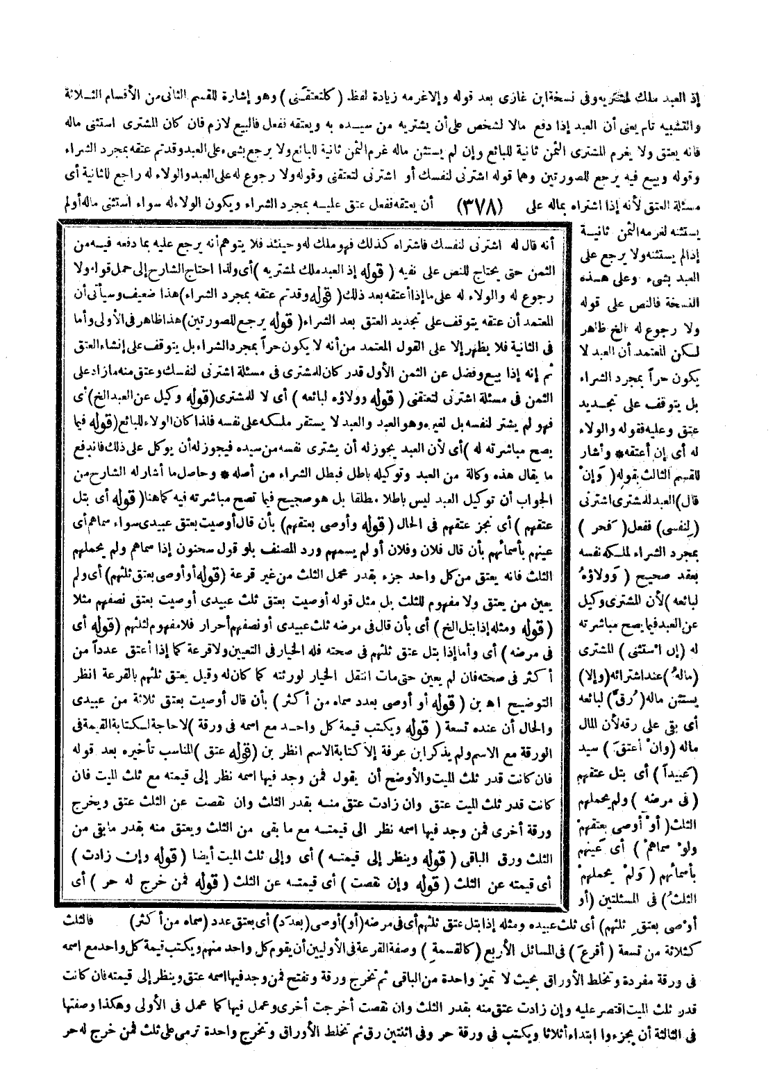ـــــــــــــــــــــــــــــQأَنَّهُ قَالَ لَهُ اشْتَرِنِي لِنَفْسِك فَاشْتَرَاهُ كَذَلِكَ فَهُوَ مِلْكٌ لَهُ وَحِينَئِذٍ فَلَا يُتَوَهَّمُ أَنَّهُ يَرْجِعُ عَلَيْهِ بِمَا دَفَعَهُ فِيهِ مِنْ الثَّمَنِ حَتَّى يَحْتَاجَ لِلنَّصِّ عَلَى نَفْيِهِ (قَوْلُهُ: إذْ الْعَبْدُ مِلْكٌ لِمُشْتَرِيهِ) أَيْ وَلِذَا احْتَاجَ الشَّارِحُ إلَى حَمْلِ قَوْلِهِ وَلَا رُجُوعَ لَهُ وَالْوَلَاءُ لَهُ عَلَى مَا إذَا أَعْتَقَهُ بَعْدَ ذَلِكَ (قَوْلُهُ: وَقَدْ تَمَّ عِتْقُهُ بِمُجَرَّدِ الشِّرَاءِ) هَذَا ضَعِيفٌ وَسَيَأْتِي أَنَّ الْمُعْتَمَدَ أَنَّ عِتْقَهُ يَتَوَقَّفُ عَلَى تَجْدِيدِ الْعِتْقِ بَعْدَ الشِّرَاءِ (قَوْلُهُ يَرْجِعُ لِلصُّورَتَيْنِ) هَذَا ظَاهِرٌ فِي الْأُولَى، وَأَمَّا فِي الثَّانِيَةِ فَلَا يَظْهَرُ إلَّا عَلَى الْقَوْلِ الْمُعْتَمَدِ مِنْ أَنَّهُ لَا يَكُونُ حُرًّا بِمُجَرَّدِ الشِّرَاءِ بَلْ يَتَوَقَّفُ عَلَى إنْشَاءِ الْعِتْقِ ثُمَّ إنَّهُ إذَا بِيعَ وَفَضَلَ عَنْ الثَّمَنِ الْأَوَّلِ قَدْرٌ كَانَ لِلْمُشْتَرِي فِي مَسْأَلَةِ اشْتَرِنِي لِنَفْسِك وَعَتَقَ مِنْهُ مَا زَادَ عَلَى الثَّمَنِ فِي مَسْأَلَةِ اشْتَرِنِي لِتُعْتِقَنِي