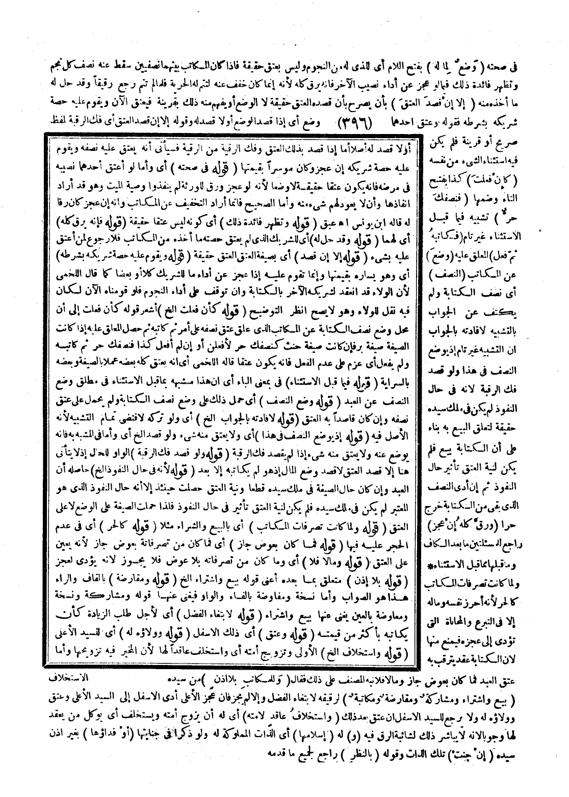 (قَوْلُهُ: وَلَمَّا كَانَتْ تَصَرُّفَاتُ الْمُكَاتِبِ) أَيْ بِالْبَيْعِ وَالشِّرَاءِ مَثَلًا (قَوْلُهُ: كَالْحُرِّ) أَيْ فِي عَدَمِ الْحَجْرِ عَلَيْهِ فِيهَا (قَوْلُهُ: فَمَا كَانَ بِعِوَضٍ جَازَ) أَيْ فَمَا كَانَ مِنْ تَصَرُّفَاتِهِ بِعِوَضٍ جَازَ؛ لِأَنَّهُ يُعَيِّنُ عَلَيْهِ الْعِتْقَ (قَوْلُهُ: وَمَا لَا فَلَا) أَيْ وَمَا كَانَ مِنْ تَصَرُّفَاتِهِ بِلَا عِوَضٍ فَلَا يَجُوزُ؛ لِأَنَّهُ يُؤَدِّي لِعَجْزٍ (قَوْلُهُ: بِلَا إذْنٍ) مُتَعَلِّقٌ بِمَا بَعْدَهُ أَعْنِي قَوْلَهُ بَيْعٍ وَاشْتِرَاءٍ إلَخْ (قَوْلُهُ: وَمُقَارَضَةٌ) بِالْقَافِ وَالرَّاءِ هَذَا هُوَ الصَّوَابُ، وَأَمَّا نُسْخَةُ وَمُفَاوَضَةٌ بِالْفَاءِ وَالْوَاوِ فَيُغْنِي عَنْهَا قَوْلُهُ وَمُشَارَكَةٌ وَنُسْخَةُ وَمُعَاوَضَةٌ بِالْعَيْنِ يُغْنِي عَنْهَا بَيْعٌ وَاشْتِرَاءٌ (قَوْلُهُ: لِابْتِغَاءِ الْفَضْلِ) أَيْ لِأَجْلِ طَلَبِ الزِّيَادَةِ كَأَنْ يُكَاتِبَهُ بِأَكْثَرَ مِنْ قِيمَتِهِ (قَوْلُهُ: وَعَتَقَ) أَيْ ذَلِكَ الْأَسْفَلُ (قَوْلُهُ: وَوَلَاؤُهُ لَهُ) أَيْ لِلسَّيِّدِ الْأَعْلَى (قَوْلُهُ: وَاسْتِخْلَافُ إلَخْ) الْأَوْلَى وَتَزْوِيجُ أَمَتِهِ أَيْ وَاسْتَخْلَفَ عَاقِدًا لَهَا؛ لِأَنَّ الْمُخَيَّرَ فِيهِ تَزْوِيجُهَا، وَأَمَّا
