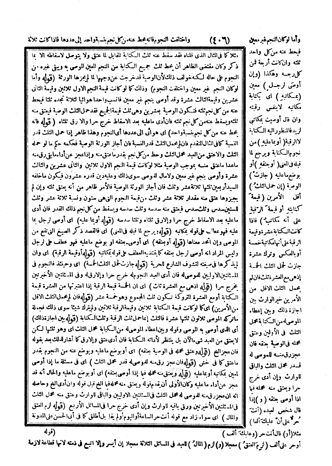ـــــــــــــــــــــــــــــQمَثَلًا كَمَا فِي الْمِثَالِ الَّذِي قُلْنَاهُ فَقَدْ سَقَطَ عَنْهُ ثُلُثُ الْكِتَابَةِ الْمُقَابِلُ لِمَا عَتَقَ وَلَا يُتَوَصَّلُ لِإِسْقَاطِهِ إلَّا بِمَا ذَكَرَهُ وَكَانَ مُقْتَضَى الظَّاهِرِ أَنْ يَحُطَّ ثُلُثَ جَمِيعِ الْكِتَابَةِ مِنْ النَّجْمِ الْمُعَيَّنِ الْمُوصَى بِهِ وَيَبْقَى غَيْرُهُ مِنْ النُّجُومِ عَلَى حَالِهِ لَكِنَّهُ خُولِفَ ذَلِكَ؛ لِأَنَّ الْوَصِيَّةَ قَدْ خَرَجَتْ عَنْ وَجْهِهَا لَمَّا لَمْ يُجِزْهَا الْوَرَثَةُ (قَوْلُهُ: وَأَمَّا لَوْ كَانَ النَّجْمُ غَيْرَ مُعَيَّنٍ وَاخْتَلَفَتْ النُّجُومُ) وَذَلِكَ كَمَا لَوْ كَانَتْ قِيمَةُ النَّجْمِ الْأَوَّلِ ثَلَاثِينَ وَقِيمَةُ الثَّانِي عِشْرِينَ وَقِيمَةُ الثَّالِثِ عَشْرَةً وَقَدْ أَوْصَى بِنَجْمٍ غَيْرِ مُعَيَّنٍ فَانْسُبْ وَاحِدًا هَوَائِيًّا لِثَلَاثَةٍ تَجِدْهُ ثُلُثًا فَيُحَطُّ عَنْهُ مِنْ كُلِّ نَجْمٍ ثُلُثُهُ فَتَكُونُ الْوَصِيَّةُ بِعِشْرِينَ وَهِيَ ثُلُثُ قِيمَةِ الْجَمِيعِ فَقَدْ حَمَلَ الثُّلُثُ الْوَصِيَّةَ فَيَعْتِقُ مِنْهُ ثُلُثُهُ وَيَسْقُطُ عَنْهُ مِنْ كُلِّ نَجْمٍ ثُلُثُهُ، فَإِنْ أَدَّى مَا عَلَيْهِ بَعْدَ الْإِسْقَاطِ خَرَجَ حُرًّا وَإِلَّا رَقَّ ثُلُثَاهُ.