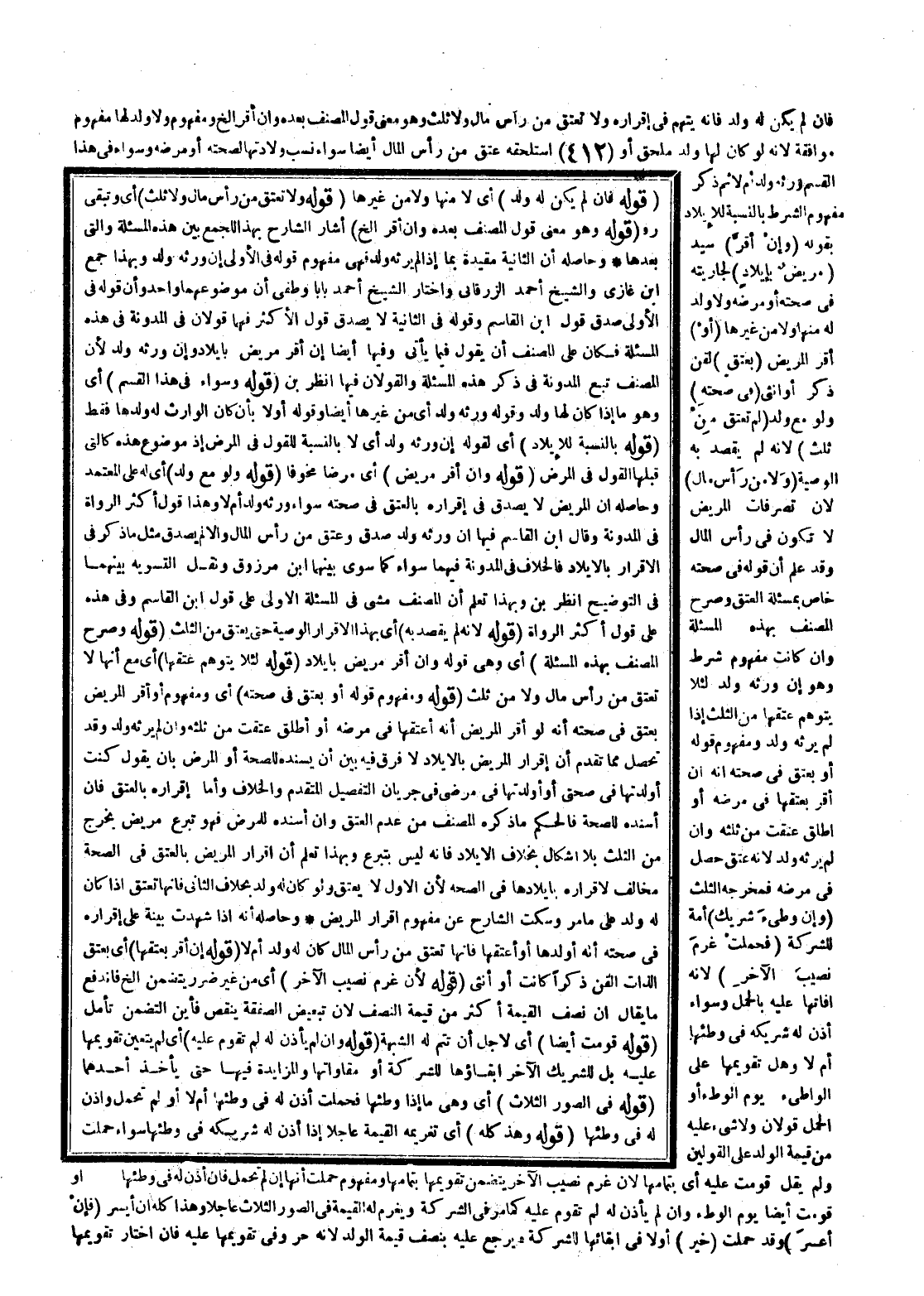 فَإِنْ لَمْ يَكُنْ لَهُ وَلَدٌ فَإِنَّهُ يُتَّهَمُ فِي إقْرَارِهِ وَلَا تَعْتِقُ مِنْ رَأْسِ مَالٍ وَلَا ثُلُثٍ وَهُوَ مَعْنَى قَوْلِ الْمُصَنِّفِ بَعْدَهُ وَإِنْ أَقَرَّ إلَخْ وَمَفْهُومٌ وَلَا وَلَدَ لَهَا مَفْهُومُ مُوَافَقَةٍ؛ لِأَنَّهُ لَوْ كَانَ لَهَا وَلَدٌ مُلْحَقٌ أَوْ اسْتَلْحَقَهُ عِتْقٌ مِنْ رَأْسِ الْمَالِ أَيْضًا سَوَاءٌ نَسَبَ وِلَادَتَهَا لِصِحَّتِهِ أَوْ مَرَضِهِ وَسَوَاءٌ فِي هَذَا الْقِسْمِ وَرِثَهُ وَلَدٌ أَمْ لَا، ثُمَّ ذَكَرَ مَفْهُومَ الشَّرْطِ بِالنِّسْبَةِ لِلْإِيلَادِ بِقَوْلِهِ (وَإِنْ) (أَقَرَّ) سَيِّدٌ (مَرِيضٌ بِإِيلَادٍ) لِجَارِيَتِهِ فِي صِحَّتِهِ أَوْ مَرَضِهِ وَلَا وَلَدَ لَهُ مِنْهَا وَلَا مِنْ غَيْرِهَا (أَوْ) أَقَرَّ الْمَرِيضُ (بِعِتْقٍ) لِقِنٍّ ذَكَرٍ أَوْ أُنْثَى (فِي صِحَّتِهِ) وَلَوْ مَعَ وَلَدٍ (لَمْ تَعْتِقْ مِنْ ثُلُثٍ) ؛ لِأَنَّهُ لَمْ يَقْصِدْ بِهِ الْوَصِيَّةَ (وَلَا مِنْ رَأْسِ مَالٍ) ؛ لِأَنَّ تَصَرُّفَاتِ الْمَرِيضِ لَا تَكُونُ فِي رَأْسِ الْمَالِ وَقَدْ عُلِمَ أَنَّ قَوْلَهُ فِي صِحَّتِهِ خَاصٌّ بِمَسْأَلَةِ الْعِتْقِ وَصَرَّحَ الْمُصَنِّفُ بِهَذِهِ الْمَسْأَلَةِ وَإِنْ كَانَتْ مَفْهُومَ شَرْطٍ وَهُوَ إنْ وَرِثَهُ وَلَدٌ لِئَلَّا يُتَوَهَّمَ عِتْقُهَا مِنْ الثُّلُثِ إذَا لَمْ يَرِثْهُ وَلَدٌ وَمَفْهُومُ قَوْلِهِ أَوْ بِعِتْقٍ فِي صِحَّتِهِ أَنَّهُ إنْ أَقَرَّ بِعِتْقِهَا فِي مَرَضِهِ أَوْ أَطْلَقَ عَتَقَتْ مِنْ ثُلُثِهِ وَإِنْ لَمْ يَرِثْهُ وَلَدٌ لِأَنَّهُ عِتْقٌ حَصَلَ فِي مَرَضِهِ فَمَخْرَجُهُ الثُّلُثُ.