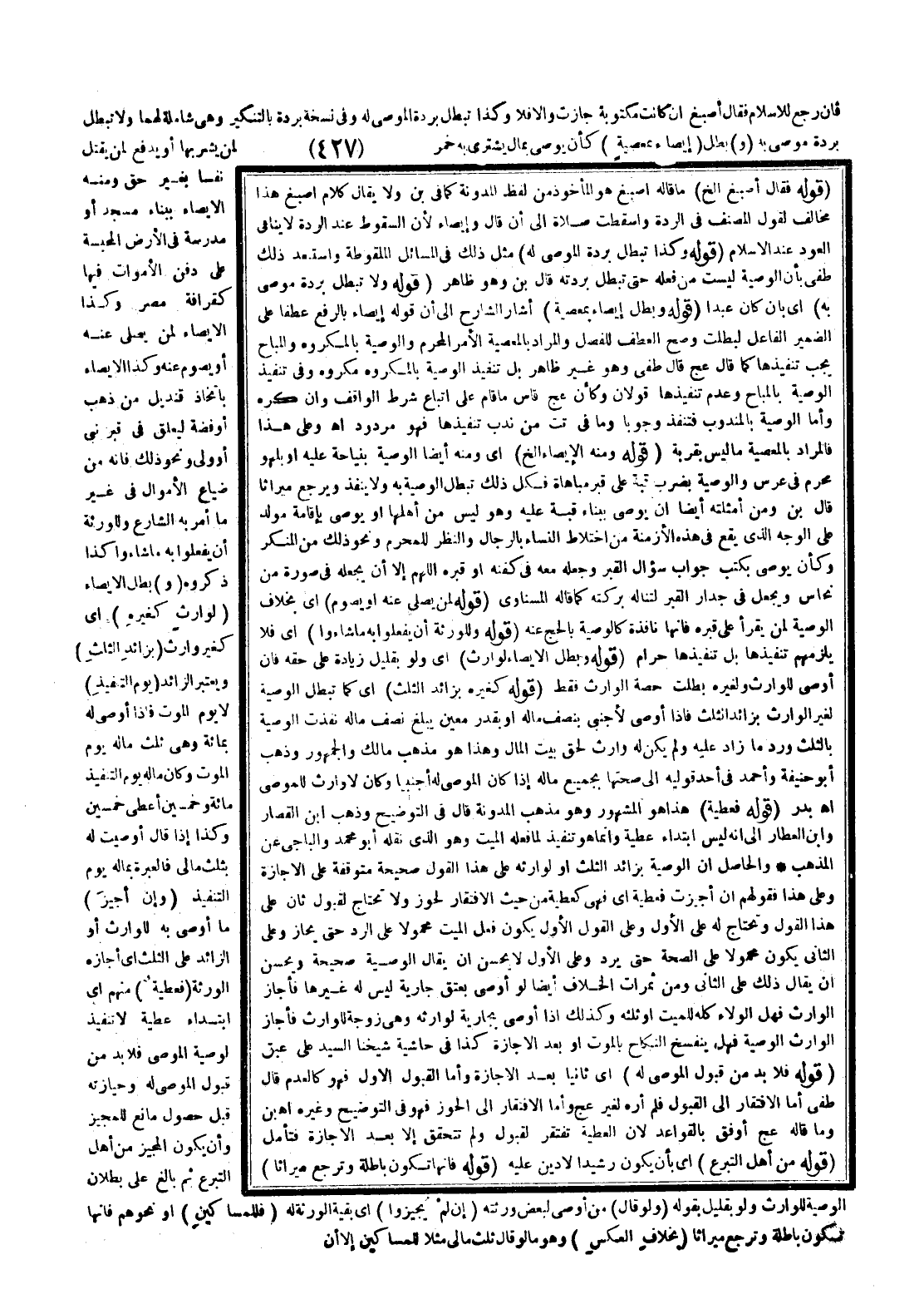 (قَوْلُهُ وَكَذَا تَبْطُلُ بِرِدَّةِ الْمُوصَى لَهُ) مِثْلُ ذَلِكَ فِي الْمَسَائِلِ الْمَلْقُوطَةِ وَاسْتَبْعَدَ ذَلِكَ طفى بِأَنَّ الْوَصِيَّةَ لَيْسَتْ مِنْ فِعْلِهِ حَتَّى تَبْطُلَ بِرِدَّتِهِ قَالَ بْن وَهُوَ ظَاهِرٌ (قَوْلُهُ وَلَا تَبْطُلُ بِرِدَّةِ مُوصًى بِهِ) أَيْ بِأَنْ كَانَ عَبْدًا