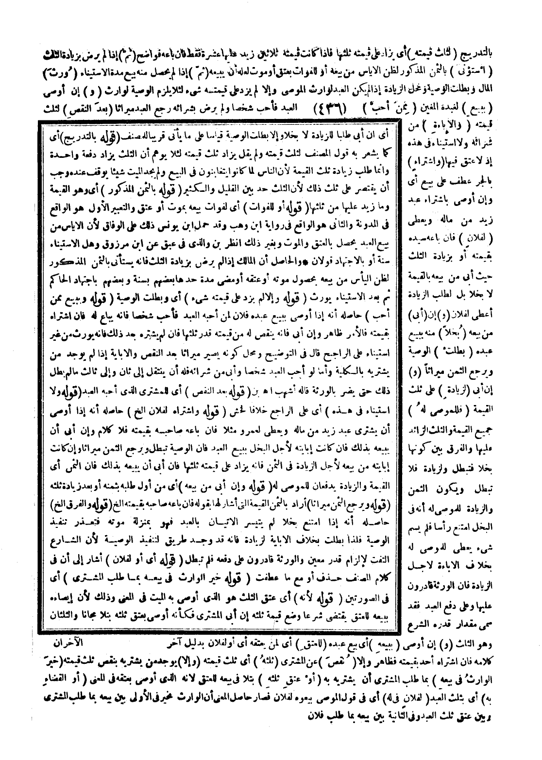 ـــــــــــــــــــــــــــــQأَيْ إنْ أَبَى طَلَبًا لِلزِّيَادَةِ لَا بُخْلًا وَإِلَّا بَطَلَتْ الْوَصِيَّةُ قِيَاسًا عَلَى مَا يَأْتِي قَرِيبًا لَلْمُصَنِّفِ (قَوْلُهُ بِالتَّدْرِيجِ) أَيْ كَمَا يُشْعِرُ بِهِ قَوْلُ الْمُصَنِّفِ لِثُلُثِ قِيمَتِهِ وَلَمْ يَقُلْ يُزَادُ ثُلُثُ قِيمَتِهِ لِئَلَّا يُوهِمَ أَنَّ الثُّلُثَ يُزَادُ دَفْعَةً وَاحِدَةً وَإِنَّمَا طَلَبَ زِيَادَةَ ثُلُثِ الْقِيمَةِ؛ لِأَنَّ النَّاسَ لَمَّا كَانُوا يَتَغَابَنُونَ فِي الْبَيْعِ وَلَمْ يَجِدْ الْمَيِّتُ شَيْئًا يُوقَفُ عِنْدَهُ وَجَبَ أَنْ يَقْتَصِرَ عَلَى ثُلُثِ ذَلِكَ؛ لِأَنَّ الثُّلُثَ حَدٌّ بَيْنَ الْقَلِيلِ وَالْكَثِيرِ.