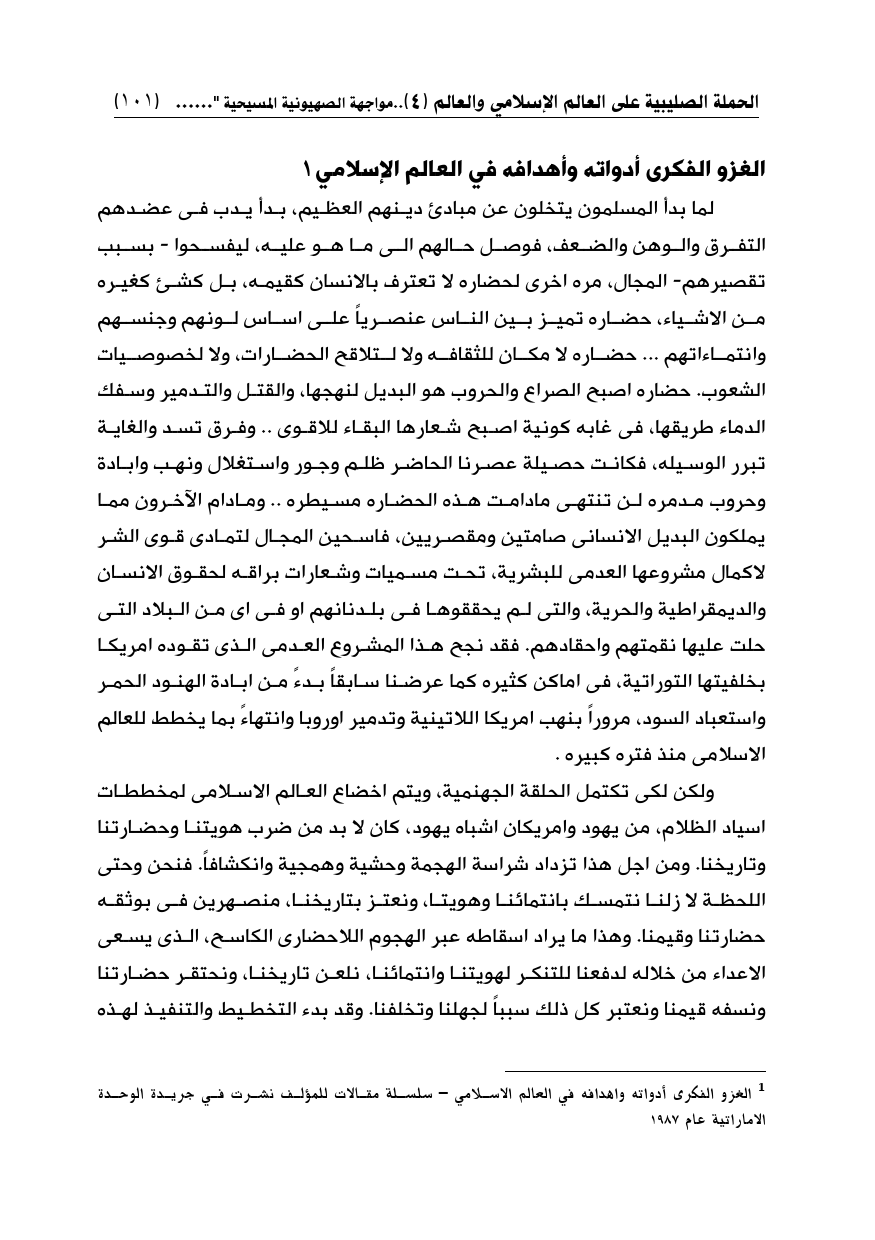 (¬1) الغزو الفكرى أدواته واهدافه في العالم الإسلامي - سلسلة مقالات للمؤلف نشرت في جريدة الوحدة الاماراتية عام 1987