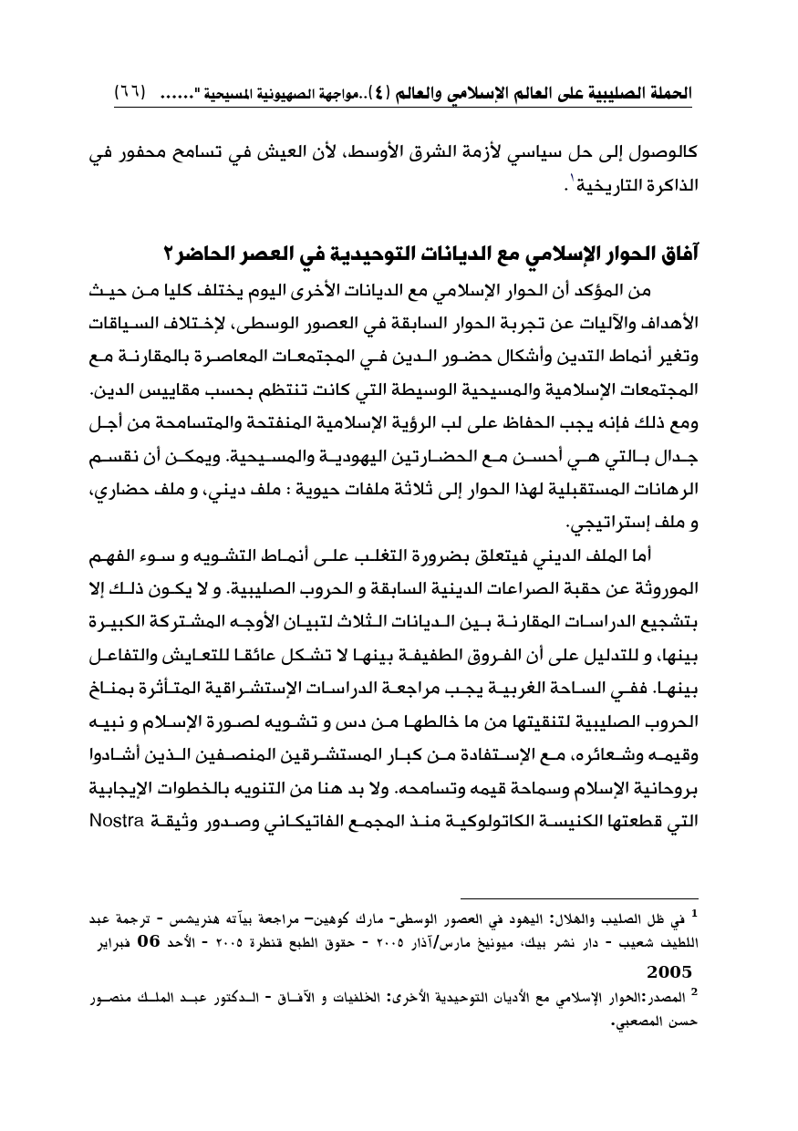 (¬2) المصدر: الحوار الإسلامي مع الأديان التوحيدية الأخرى: الخلفيات و الآفاق - الدكتور عبد الملك منصور حسن المصعبي.