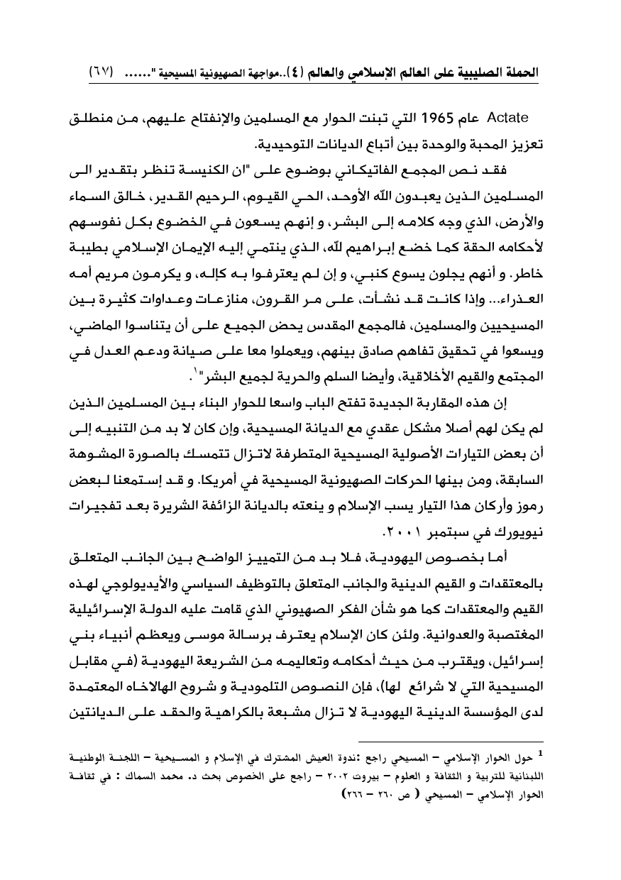 (¬1) حول الحوار الإسلامي - المسيحي راجع: ندوة العيش المشترك في الإسلام و المسيحية - اللجنة الوطنية اللبنانية للتربية و الثقافة و العلوم - بيروت 2002 - راجع على الخصوص بحث د. محمد السماك: في ثقافة الحوار الإسلامي - المسيحي (ص 260 - 266)