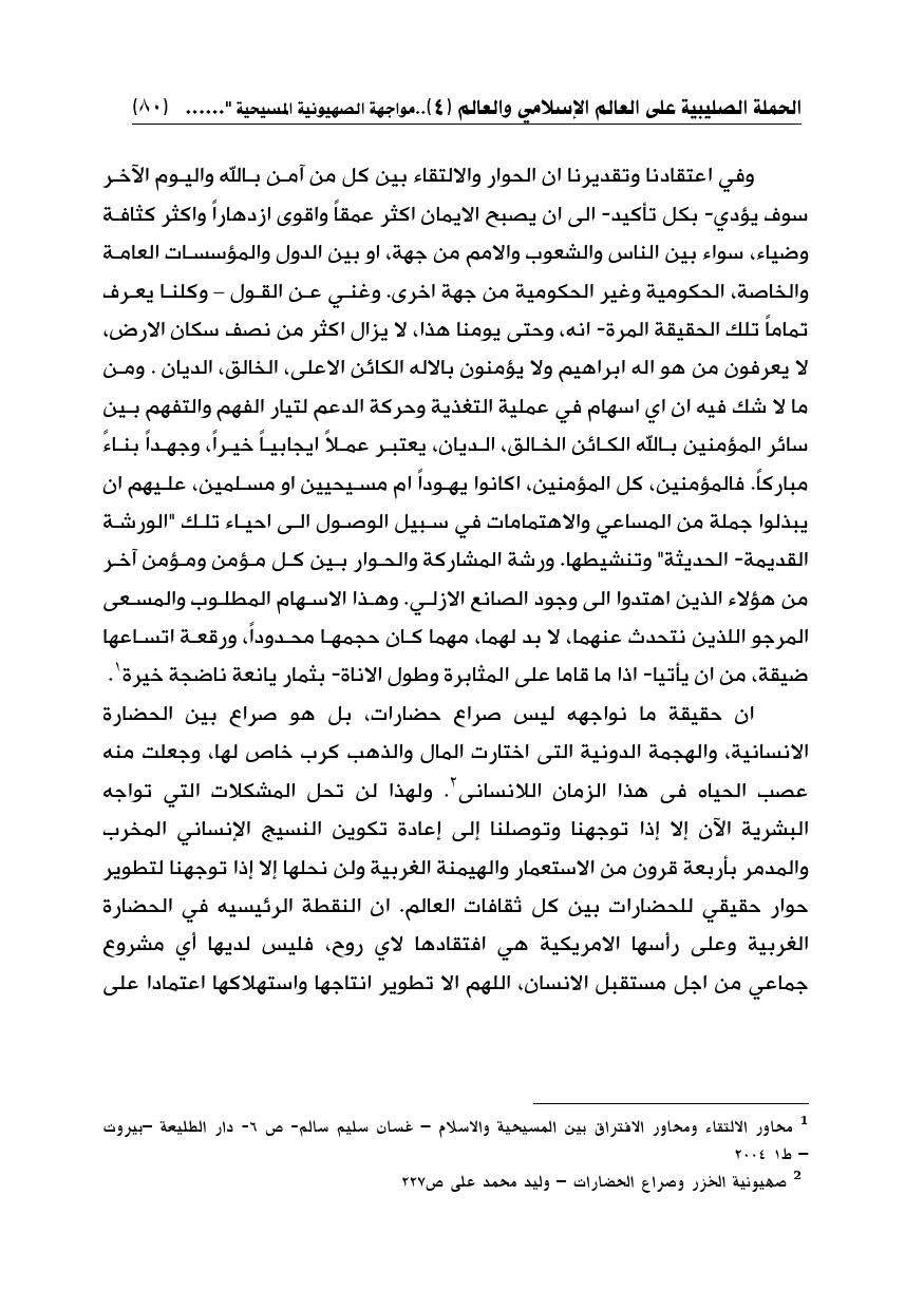 (¬1) محاور الالتقاء ومحاور الافتراق بين المسيحية والإسلام - غسان سليم سالم- ص 6 - دار الطليعة -بيروت - ط1 2004
