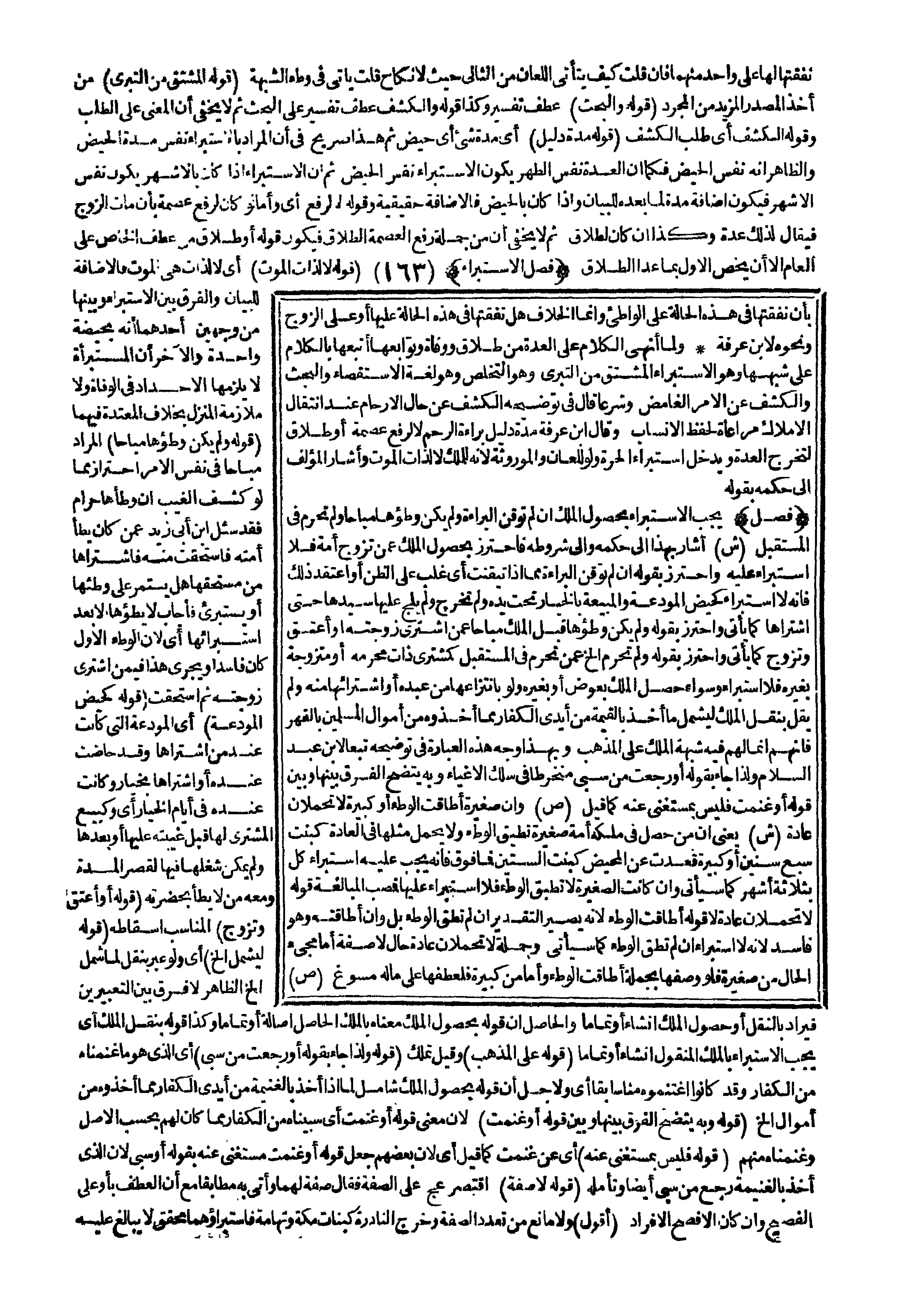 وَلَمَّا أَنْهَى الْكَلَامَ عَلَى الْعِدَّةِ مِنْ طَلَاقٍ وَوَفَاةٍ وَتَوَابِعِهَا أَتْبَعَهَا بِالْكَلَامِ عَلَى شَبَهِهَا وَهُوَ الِاسْتِبْرَاءُ الْمُشْتَقُّ مِنْ التَّبَرِّي وَهُوَ التَّخَلُّصُ وَهُوَ لُغَةً الِاسْتِقْصَاءُ وَالْبَحْثُ وَالْكَشْفُ عَنْ الْأَمْرِ الْغَامِضِ وَشَرْعًا قَالَ فِي تَوْضِيحِهِ الْكَشْفُ عَنْ حَالِ الْأَرْحَامِ عِنْدَ انْتِقَالِ الْأَمْلَاكِ مُرَاعَاةً لِحِفْظِ الْأَنْسَابِ وَقَالَ ابْنُ عَرَفَةَ: مُدَّةُ دَلِيلِ بَرَاءَةِ الرَّحِمِ لَا لِرَفْعِ عِصْمَةٍ أَوْ طَلَاقٍ لِتَخْرُجَ الْعِدَّةُ وَيَدْخُلَ اسْتِبْرَاءُ الْحُرَّةِ وَلَوْ لِلِعَانٍ وَالْمَوْرُوثَةِ؛ لِأَنَّهُ لِلْمِلْكِ لَا لِذَاتِ الْمَوْتِ وَأَشَارَ الْمُؤَلِّفُ إلَى حُكْمِهِ بِقَوْلِهِ.