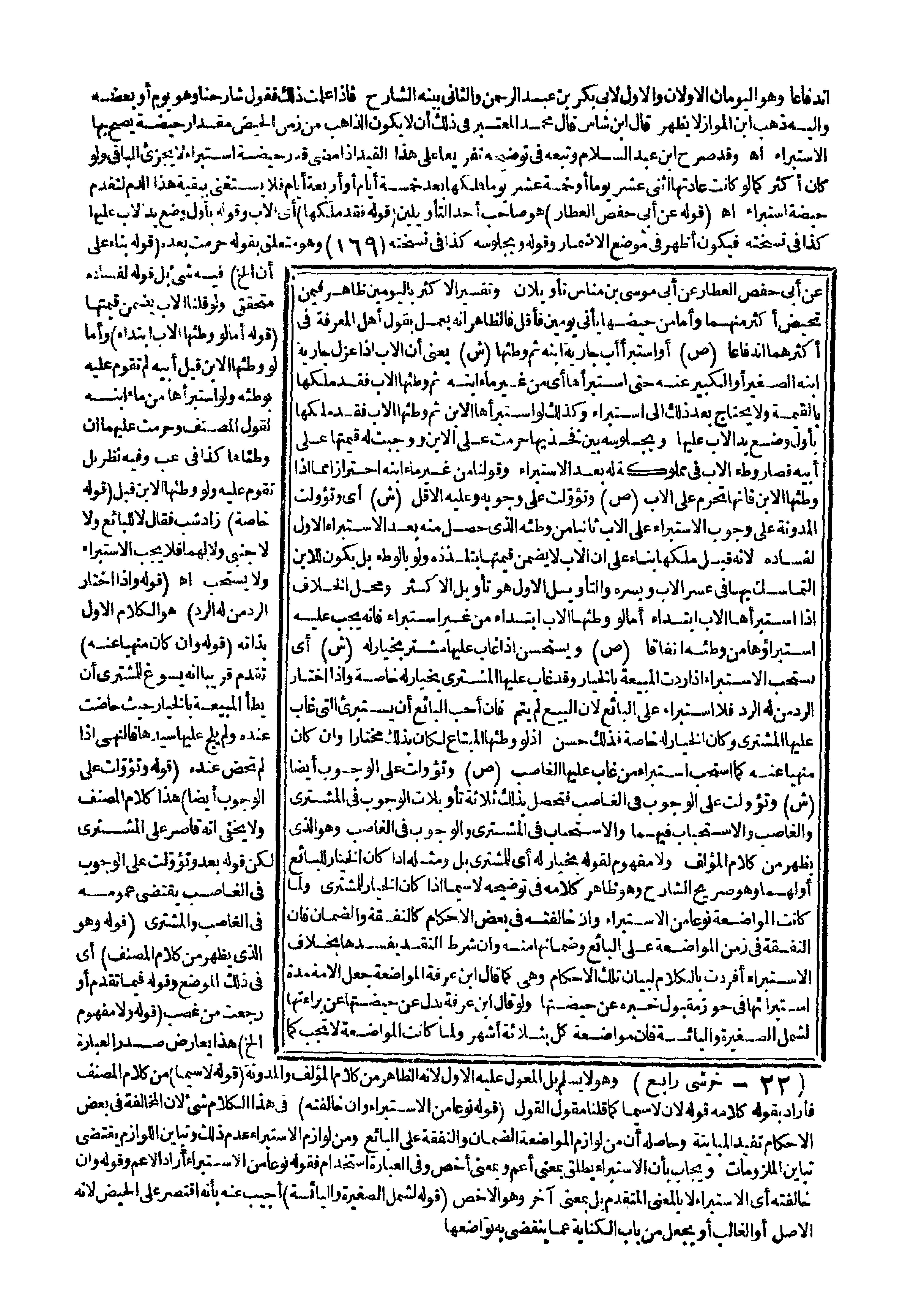 ـــــــــــــــــــــــــــــQانْدِفَاعًا وَهُوَ الْيَوْمَانِ الْأَوَّلَانِ وَالْأَوَّلُ لِأَبِي بَكْرِ بْنِ عَبْدِ الرَّحْمَنِ وَالثَّانِي بَيَّنَهُ الشَّارِحُ فَإِذَا عَلِمْت ذَلِكَ فَقَوْلُ شَارِحِنَا وَهُوَ يَوْمٌ أَوْ بَعْضُهُ وَإِلَيْهِ ذَهَبَ ابْنُ الْمَوَّازِ لَا يَظْهَرُ قَالَ ابْنُ شَاسٍ قَالَ مُحَمَّدٌ الْمُعْتَبَرُ فِي ذَلِكَ أَنْ لَا يَكُونَ الذَّاهِبُ مِنْ زَمَنِ الْحَيْضِ مِقْدَارَ حَيْضَةٍ صَحَّ بِهَا الِاسْتِبْرَاءُ اهـ.