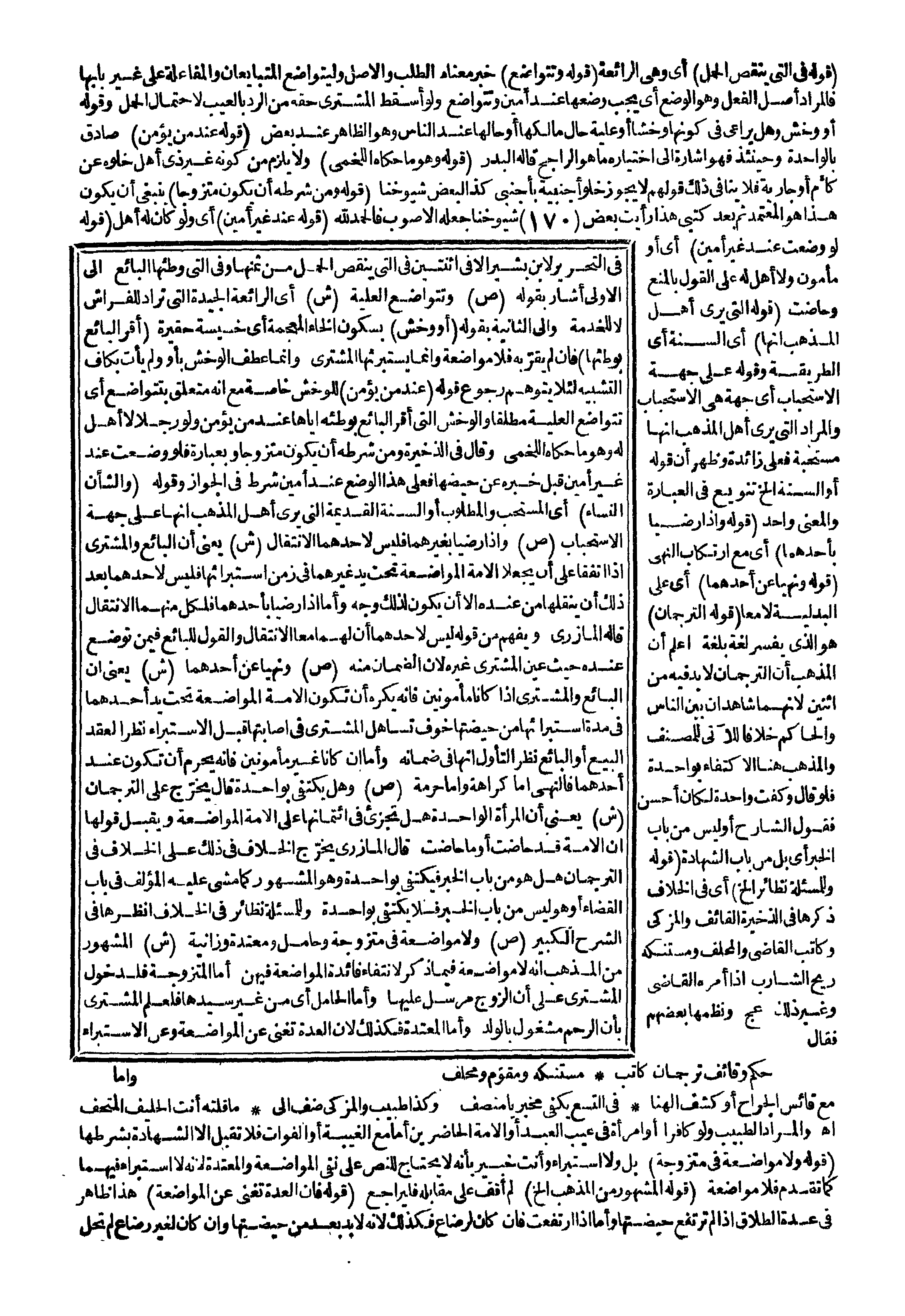 فِي التَّحْرِيرِ لِابْنِ بَشِيرٍ إلَّا فِي اثْنَتَيْنِ فِي الَّتِي يُنْقِصُ الْحَمْلُ مِنْ ثَمَنِهَا وَفِي الَّتِي وَطِئَهَا الْبَائِعُ إلَى الْأُولَى أَشَارَ بِقَوْلِهِ (ص) وَتَتَوَاضَعُ الْعَلِيَّةُ (ش) أَيْ الرَّائِعَةُ الْجَيِّدَةُ الَّتِي تُرَادُ لِلْفِرَاشِ لَا لِلْخِدْمَةِ وَإِلَى الثَّانِيَةِ بِقَوْلِهِ (أَوْ وَخْشٌ) بِسُكُونِ الْخَاءِ الْمُعْجَمَةِ أَيْ خَسِيسَةٌ حَقِيرَةٌ (أَقَرَّ الْبَائِعُ بِوَطْئِهَا) فَإِنْ لَمْ يُقِرَّ بِهِ فَلَا مُوَاضَعَةَ وَإِنَّمَا يَسْتَبْرِئُهَا الْمُشْتَرِي وَإِنَّمَا عَطَفَ الْوَخْشَ بِأَوْ وَلَمْ يَأْتِ بِكَافِ التَّشْبِيهِ لِئَلَّا يُتَوَهَّمَ رُجُوعُ قَوْلِهِ (عِنْدَ مَنْ يُؤْمَنُ) لِلْوَخْشِ خَاصَّةً مَعَ أَنَّهُ مُتَعَلِّقٌ بِتَتَوَاضَعَ أَيْ تَتَوَاضَعُ الْعَلِيَّةُ مُطْلَقًا وَالْوَخْشُ الَّتِي أَقَرَّ الْبَائِعُ بِوَطْئِهِ إيَّاهَا عِنْدَ مَنْ يُؤْمَنُ وَلَوْ رَجُلًا لَا أَهْلَ لَهُ وَهُوَ مَا حَكَاهُ اللَّخْمِيُّ وَقَالَ فِي الذَّخِيرَةِ وَمِنْ شَرْطِهِ أَنْ يَكُونَ مُتَزَوِّجًا وَبِعِبَارَةٍ فَلَوْ وُضِعَتْ عِنْدَ غَيْرِ أَمِينٍ قُبِلَ خَبَرُهُ عَنْ حَيْضِهَا فَعَلَى هَذَا الْوَضْعِ عِنْدَ أَمِينٍ شَرْطٌ فِي الْجَوَازِ وَقَوْلُهُ (وَالشَّأْنُ النِّسَاءُ) أَيْ الْمُسْتَحَبُّ وَالْمَطْلُوبُ أَوْ السُّنَّةُ الْقَدِيمَةُ الَّتِي يَرَى أَهْلُ الْمَذْهَبِ أَنَّهَا عَلَى جِهَةِ الِاسْتِحْبَابِ.