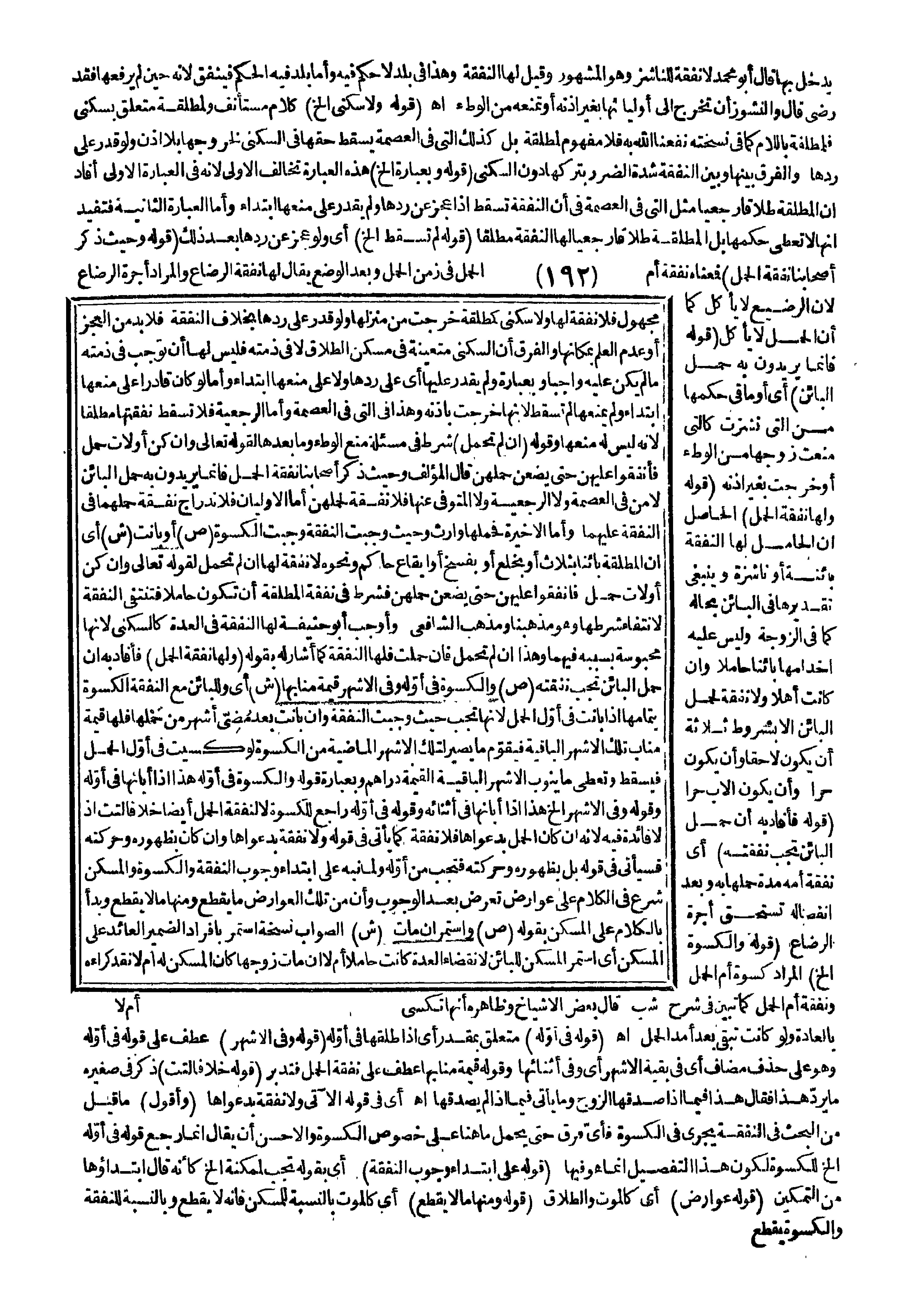 . (قَوْلُهُ وَالْكِسْوَةُ إلَخْ) الْمُرَادُ كِسْوَةُ أُمِّ الْحَمْلِ وَنَفَقَةُ أُمِّ الْحَمْلِ كَمَا تَبَيَّنَ فِي شَرْحِ شب قَالَ بَعْضُ الْأَشْيَاخِ وَظَاهِرُهُ أَنَّهَا تُكْسَى بِالْعَادَةِ وَلَوْ كَانَتْ تَبْقَى بَعْدَ أَمَدِ الْحَمْلِ. اهـ.
