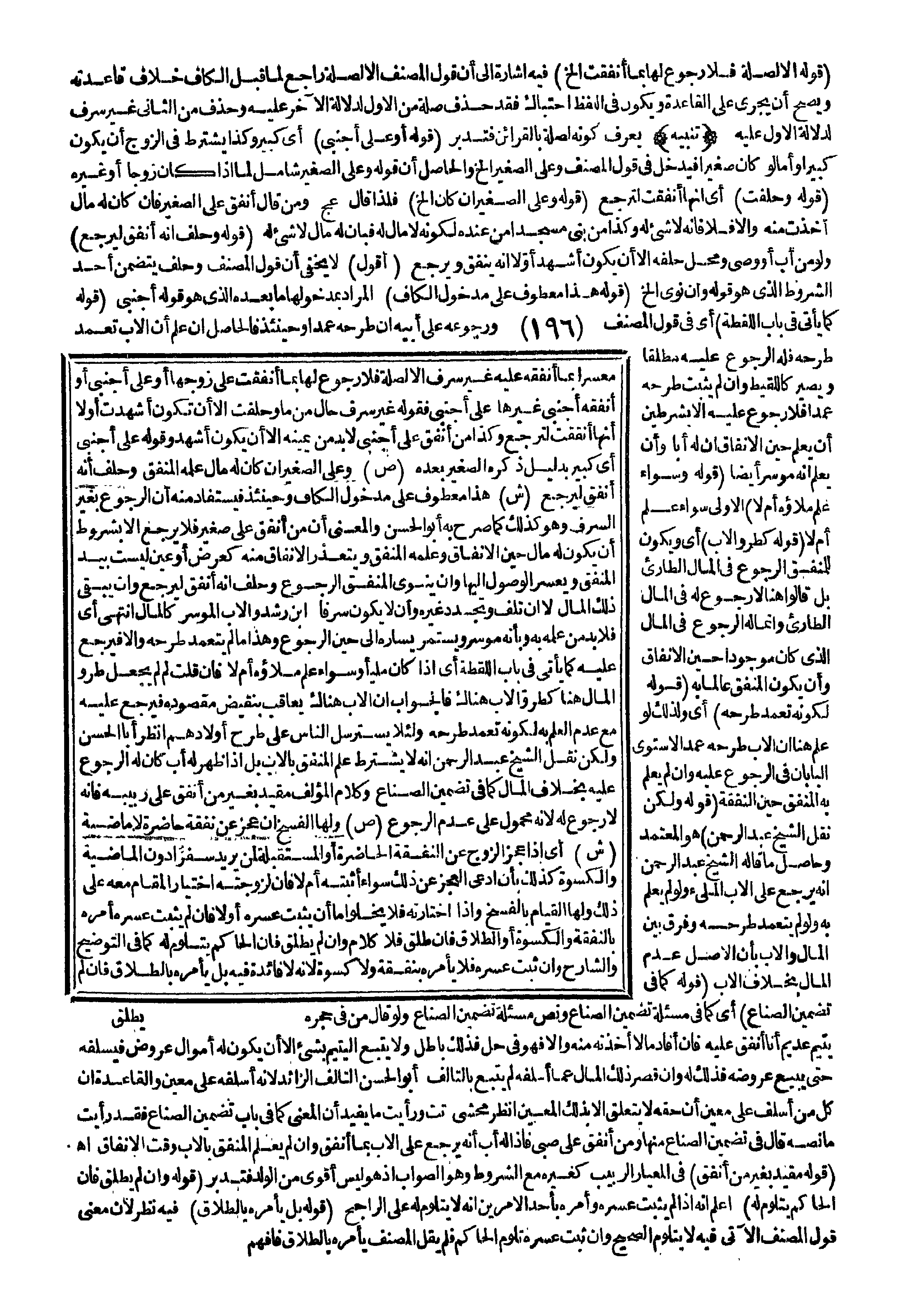 (قَوْلُهُ لِكَوْنِهِ تَعَمَّدَ طَرْحَهُ) أَيْ وَلِذَلِكَ لَوْ عَلِمَ هُنَا أَنَّ الْأَبَ طَرَحَهُ عَمْدًا لَاسْتَوَى الْبَابَانِ فِي الرُّجُوعِ عَلَيْهِ وَإِنْ لَمْ يَعْلَمْ بِهِ الْمُنْفِقُ حِينَ النَّفَقَةِ (قَوْلُهُ وَلَكِنَّ نَقْلَ الشَّيْخُ عَبْدُ الرَّحْمَنِ) هُوَ الْمُعْتَمَدُ وَحَاصِلُ مَا قَالَهُ الشَّيْخُ عَبْدُ الرَّحْمَنِ أَنَّهُ يَرْجِعُ عَلَى الْأَبِ الْمَلِيءِ وَلَوْ لَمْ يَعْلَمْ بِهِ وَلَوْ لَمْ يَتَعَمَّدْ طَرْحَهُ وَفَرَّقَ بَيْنَ الْمَالِ وَالْأَبِ بِأَنَّ الْأَصْلَ عَدَمُ الْمَالِ بِخِلَافِ الْأَبِ.
