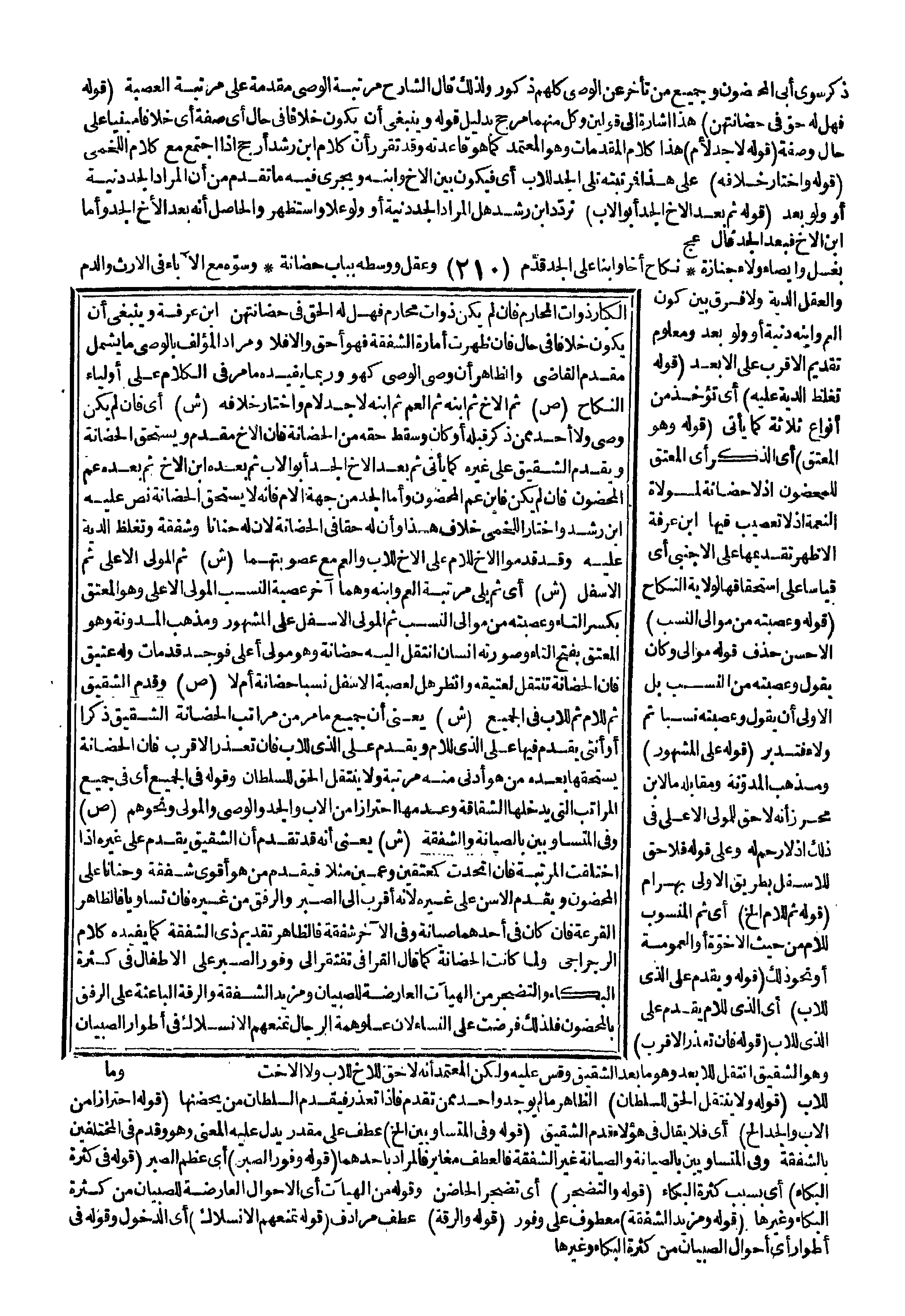 ـــــــــــــــــــــــــــــQذَكَرٌ سِوَى أَبَى الْمَحْضُونِ وَجَمِيعُ مَنْ تَأَخَّرَ عَنْ الْوَصِيِّ كُلُّهُمْ ذُكُورٌ وَلِذَلِكَ قَالَ الشَّارِحُ مَرْتَبَةُ الْوَصِيِّ مُقَدَّمَةٌ عَلَى مَرْتَبَةِ الْعَصَبَةِ.