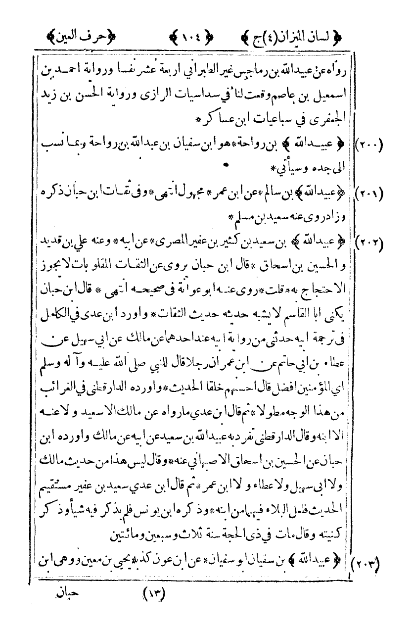 [203] "عبيد الله" بن سفيان أبو سفيان عن ابن عون كذبه يحيى بن معين ووهى ابن