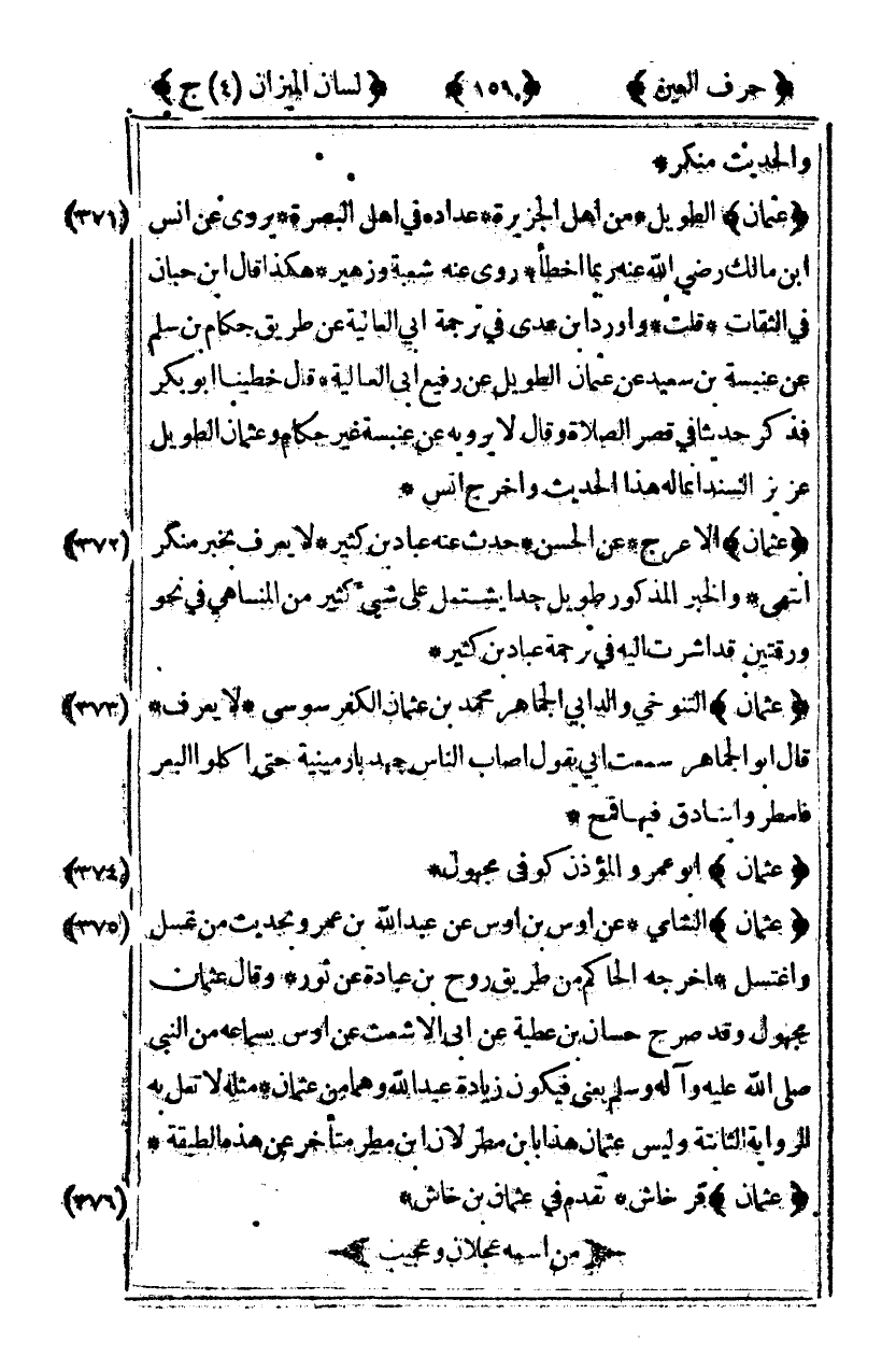[372] "عثمان" الأعرج عن الحسن حدث عنه عباد بن كثير لا يعرف بخبر منكر انتهى والخبر المذكور طويل جدا يشتمل على شيء كثير من المناهي في نحو ورقتين قد أشرت إليه في ترجمة عباد بن كثير.