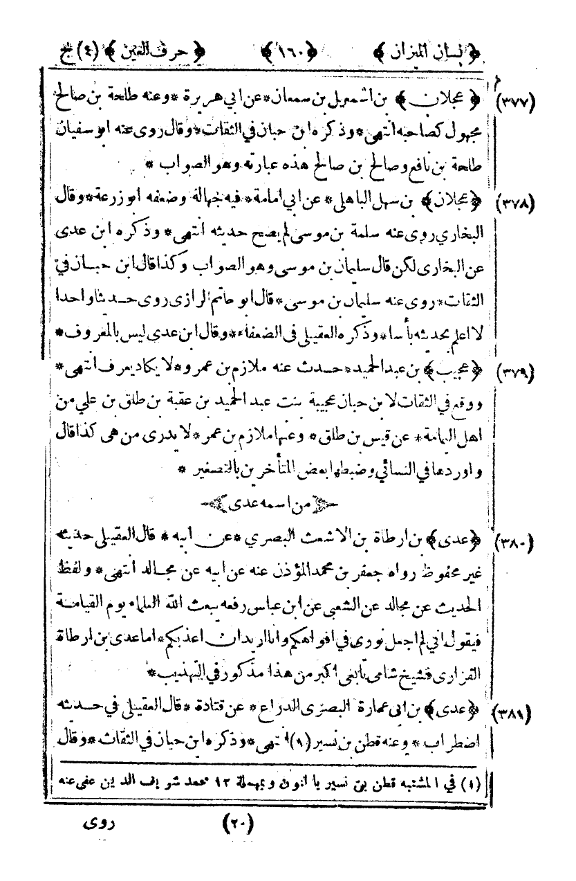 [377] "عجلان" بن إسمعيل بن سمعان عن أبي هريرة وعنه طلحة بن صالح مجهول كصاحبه انتهى وذكره ابن حبان في الثقات وقال روى عنه أبو سفيان طلحة بن نافع وصالح بن صالح هذه عبارته وهو الصواب.