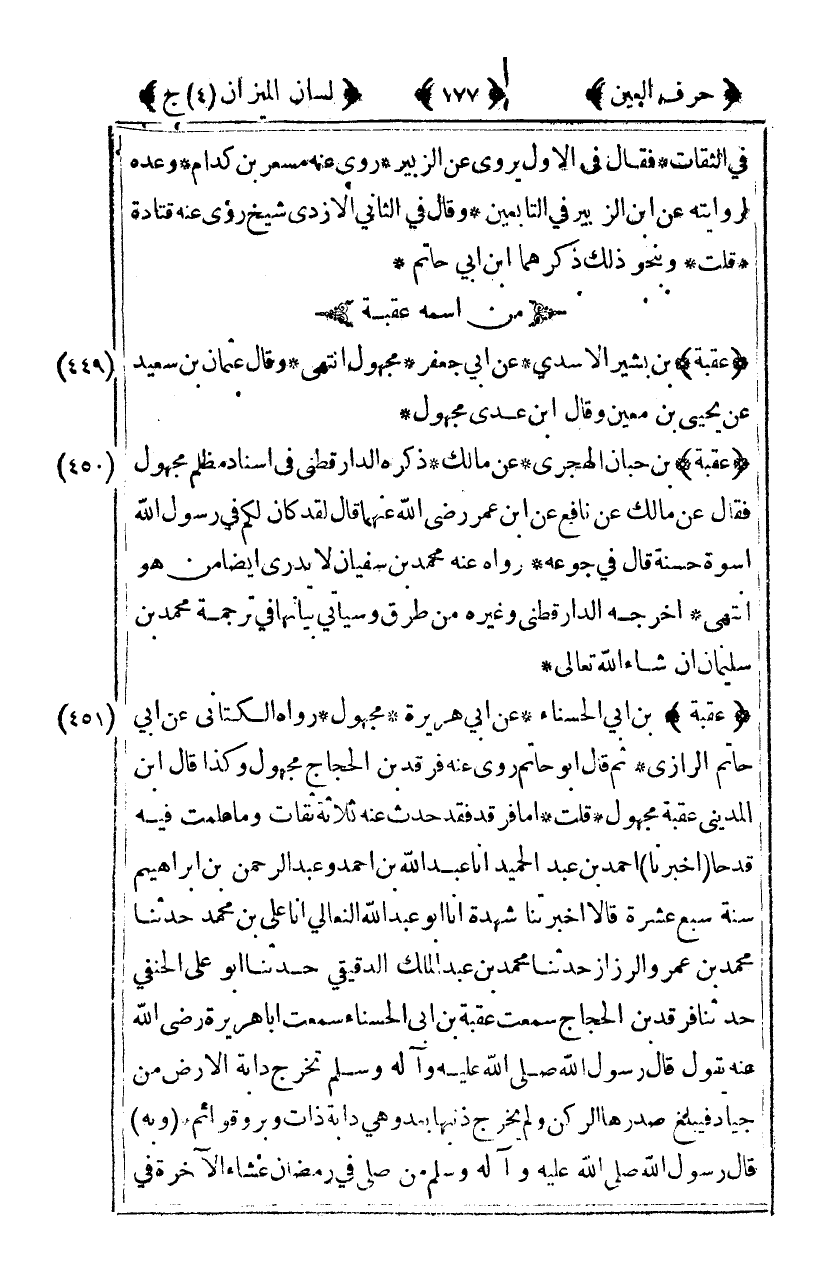 [449] "عقبة" بن بشير الأسدي عن أبي جعفر مجهول انتهى وقال عثمان بن سعيد عن يحيى بن معين وقال ابن عدي مجهول.