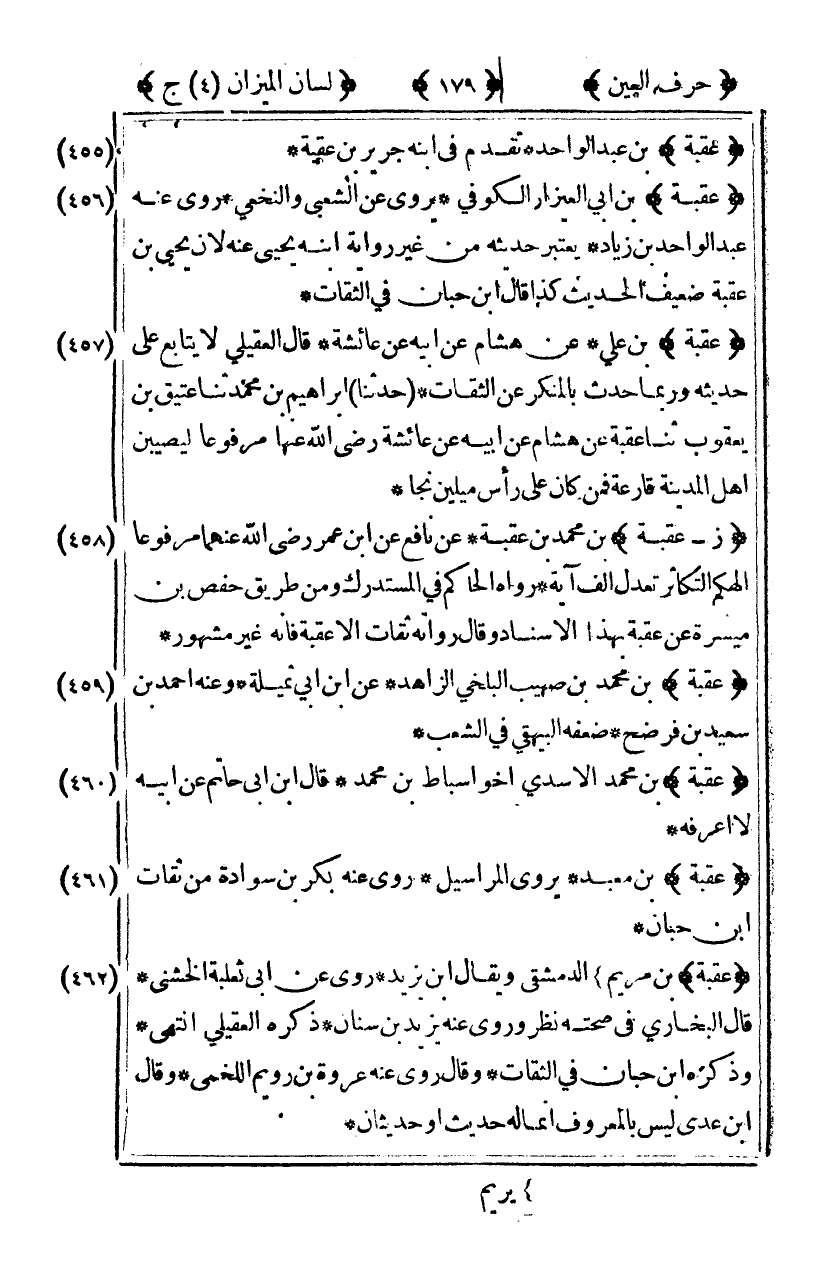 [456] "عقبة" بن أبي العيزار الكوفي يروي عن الشعبي والنخعي روى عنه عبد الواحد بن زياد يعتبر حديثه من غير رواية ابنه يحيى عنه الآن يحيى بن عقبة ضعيف الحديث كذا قال ابن حبان في الثقات.