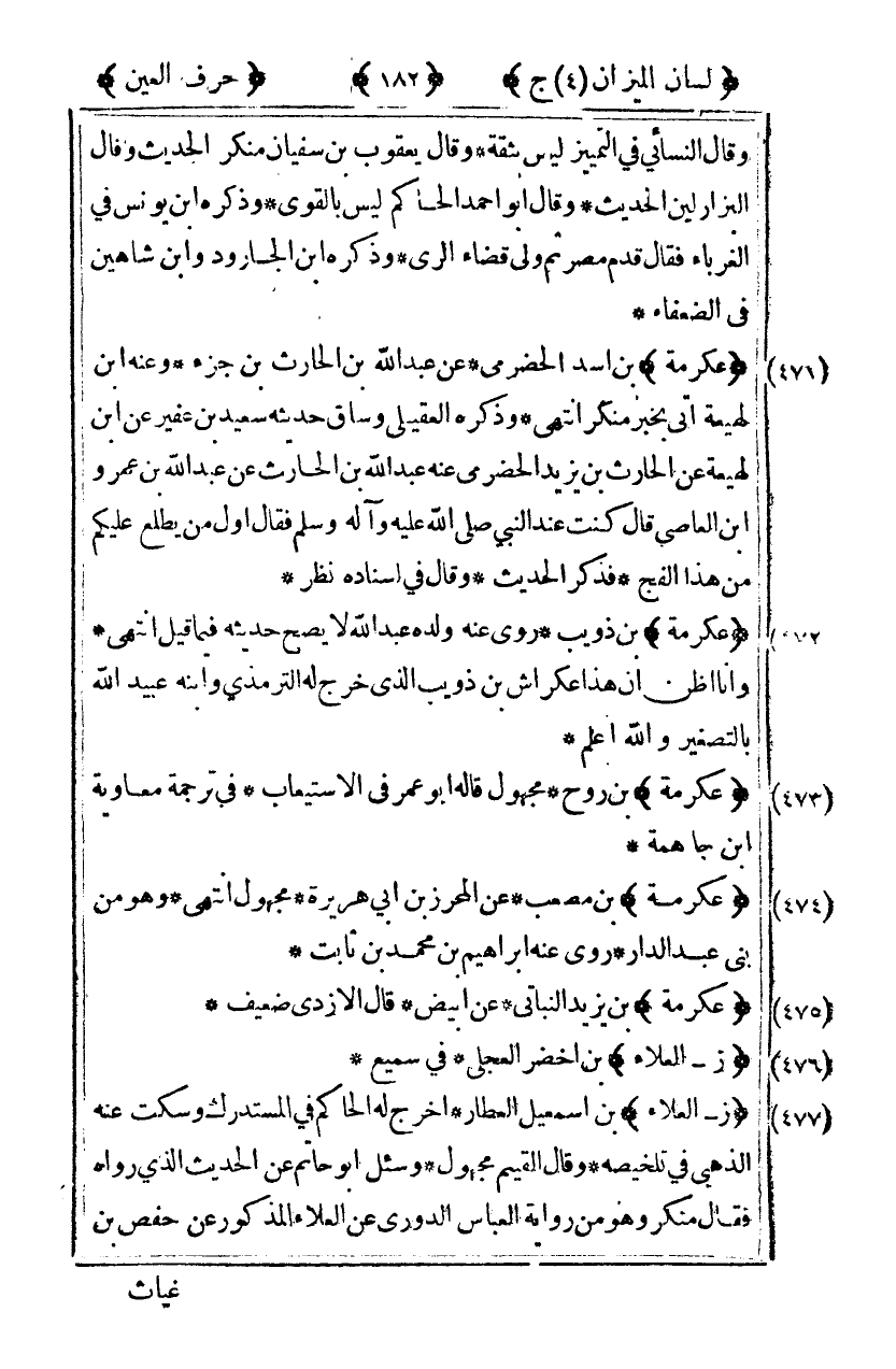 [475] "عكرمة" بن يزيد النباتي عن أبيض قال الأزدي ضعيف.