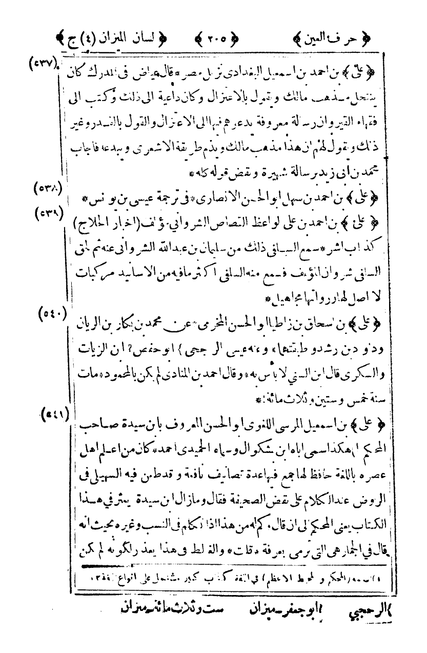 [541] "علي" بن إسمعيل المرسي اللغوي أبو الحسن المعروف بابن سيدة صاحب المحكم هكذا سمى أباه بن بشكوال وسماه الحميدي أحمد كان من أعلم أهل عصره باللغة حافظ لها جمع فيها عدة تصانيف نافعة وقد طعن فيه السهلي في الروض عند الكلام على نقض الصحيفة فقال وما زال بن سيدة يعثر في هذا الكتاب يعني المحكم4 على أن قال وكم له من هذا إذا تكلم في النسب وغيره بحيث أنه قال في الجمار هي التي ترمي بعرفة قلت والغالط في هذا يعذر لكونه لم يكن